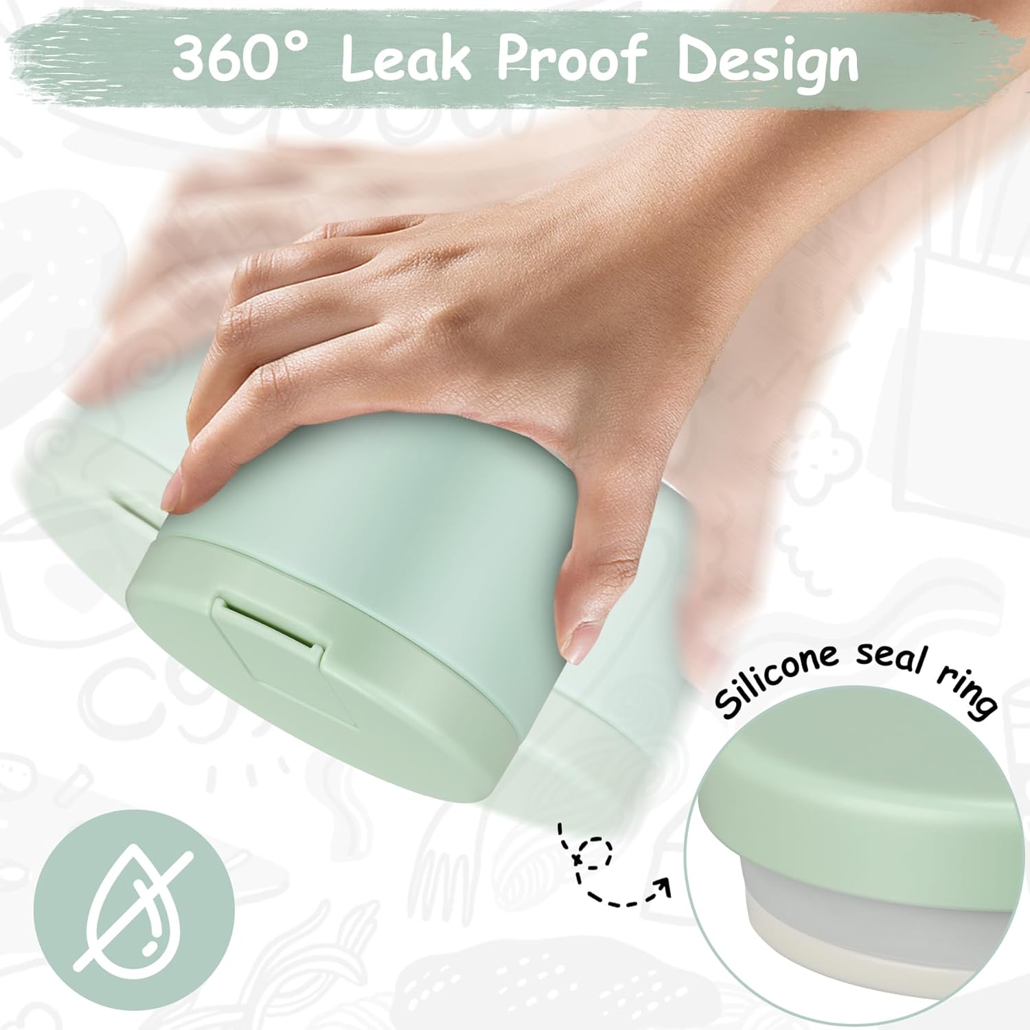- Buckle Structure Lid: Our food container with a press-seal structure, Just pull up the handle to 90 Β° to open the lid, which is very friendly to children, so children's little hands can easily open it.