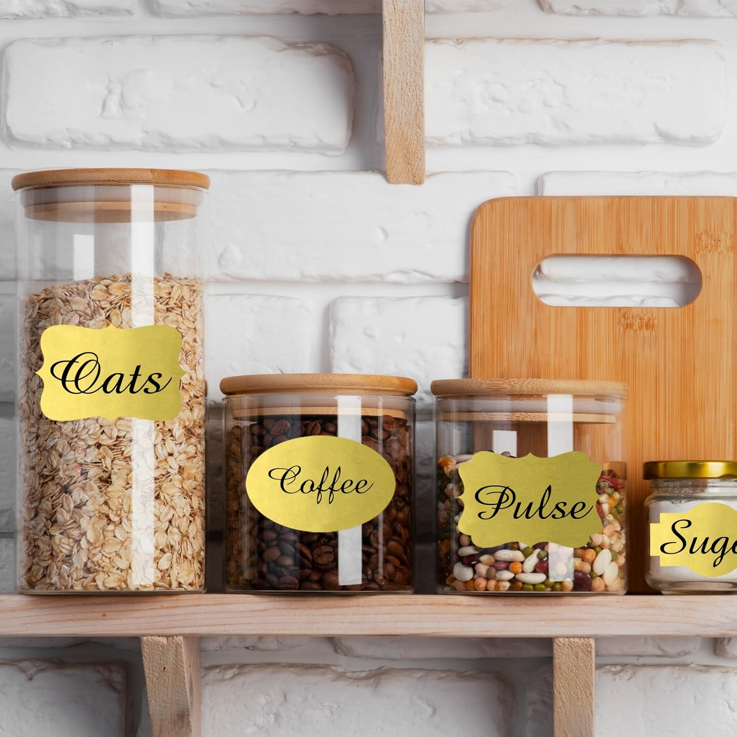 350 PCS Gift Tags Stickers Name Labels Stickers,2" x 1.2" Fancy Shape Stickers Self-Adhesive Handmade Bottle All-Purpose Jar Labels for Presents Cosmetic Decoration Jars Food Craft (Gold)