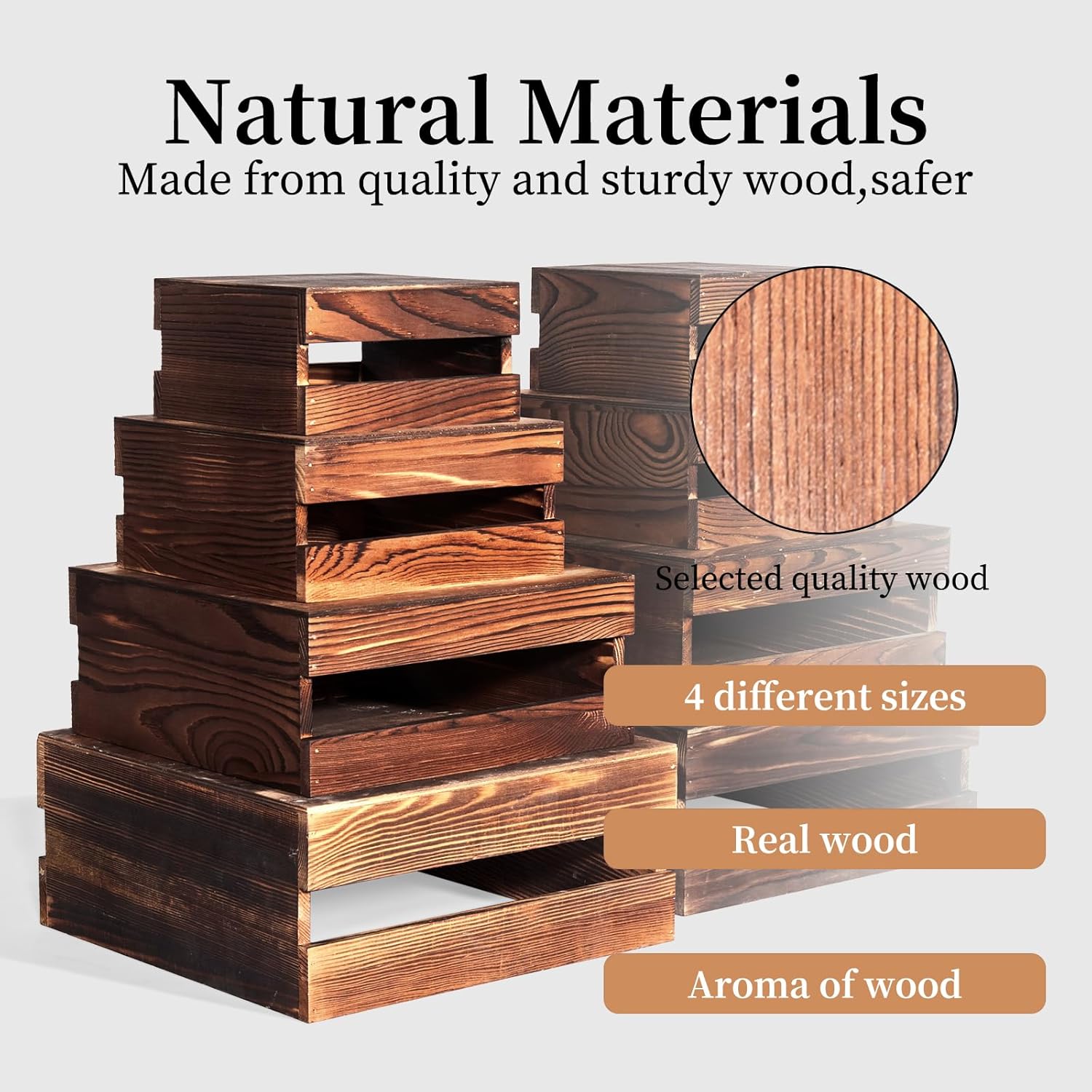 - Versatile Sizes for Layered Elegance: Our wooden stackable display boxes are carefully sized for multi-layer display, Large: 8.9x7.9x5.1 inches; Medium: 8.0x7.0x4.7 inches; Small: 7.2x6.2x4.3 inches; Extra Small: 6.4x5.4x3.9 inches, create stunning visual tiers and levels of display space that captivate every guest