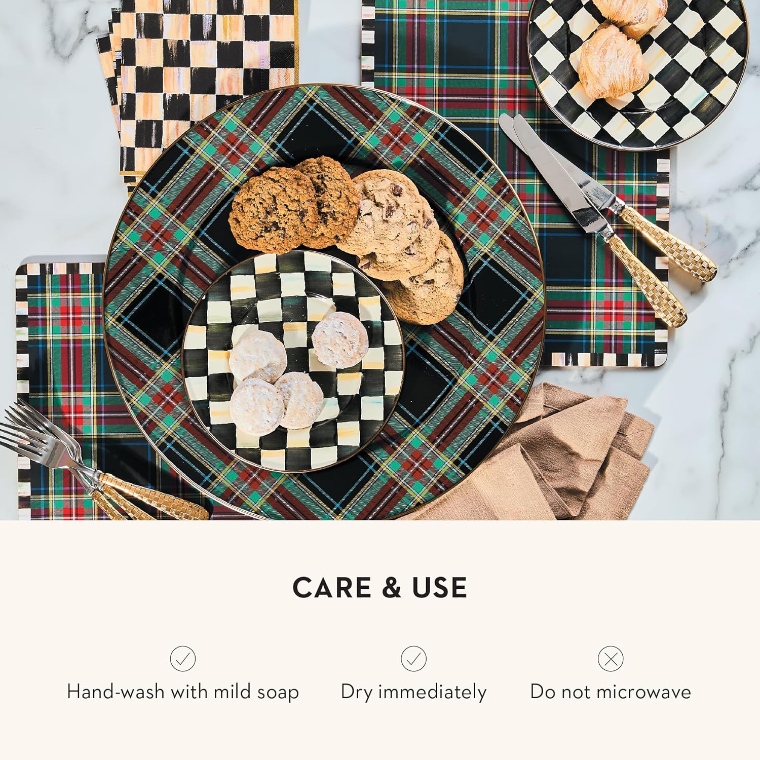 MACKENZIE-CHILDS Enamel Serving Platter, Decorative Serving Platter for Food, 16 Inches, Black Tartan