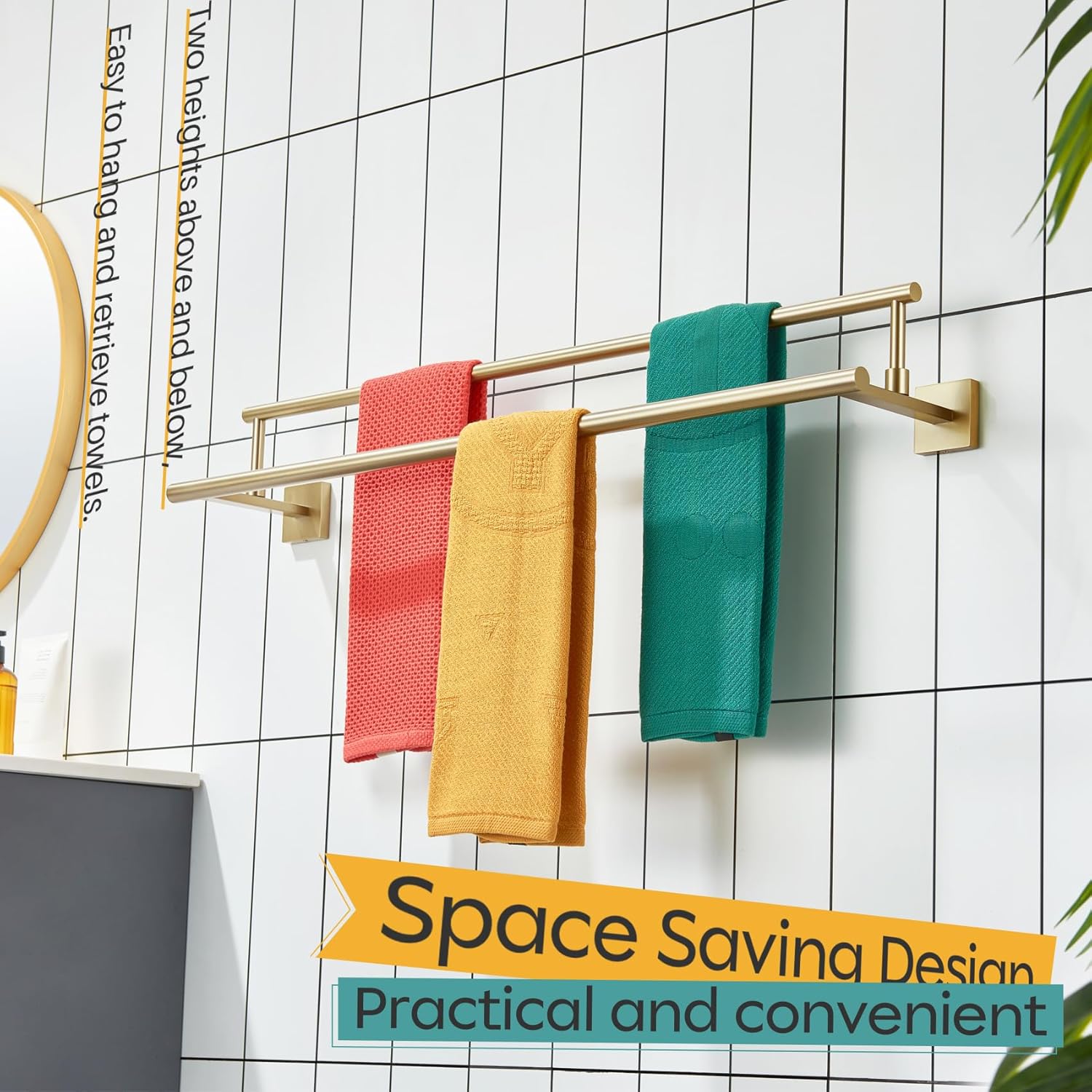 - ◄ MODERN DESIGN ► KOKOSIRI double towel rack with two rails combines elegant square, sleek round, and unique rectangle elements to bring a modern aesthetic to your bathroom, shower room, toilet, kitchen, washroom, pool or garage. You can choose from our series of bathroom hardware for a complete, coordinated look to your place