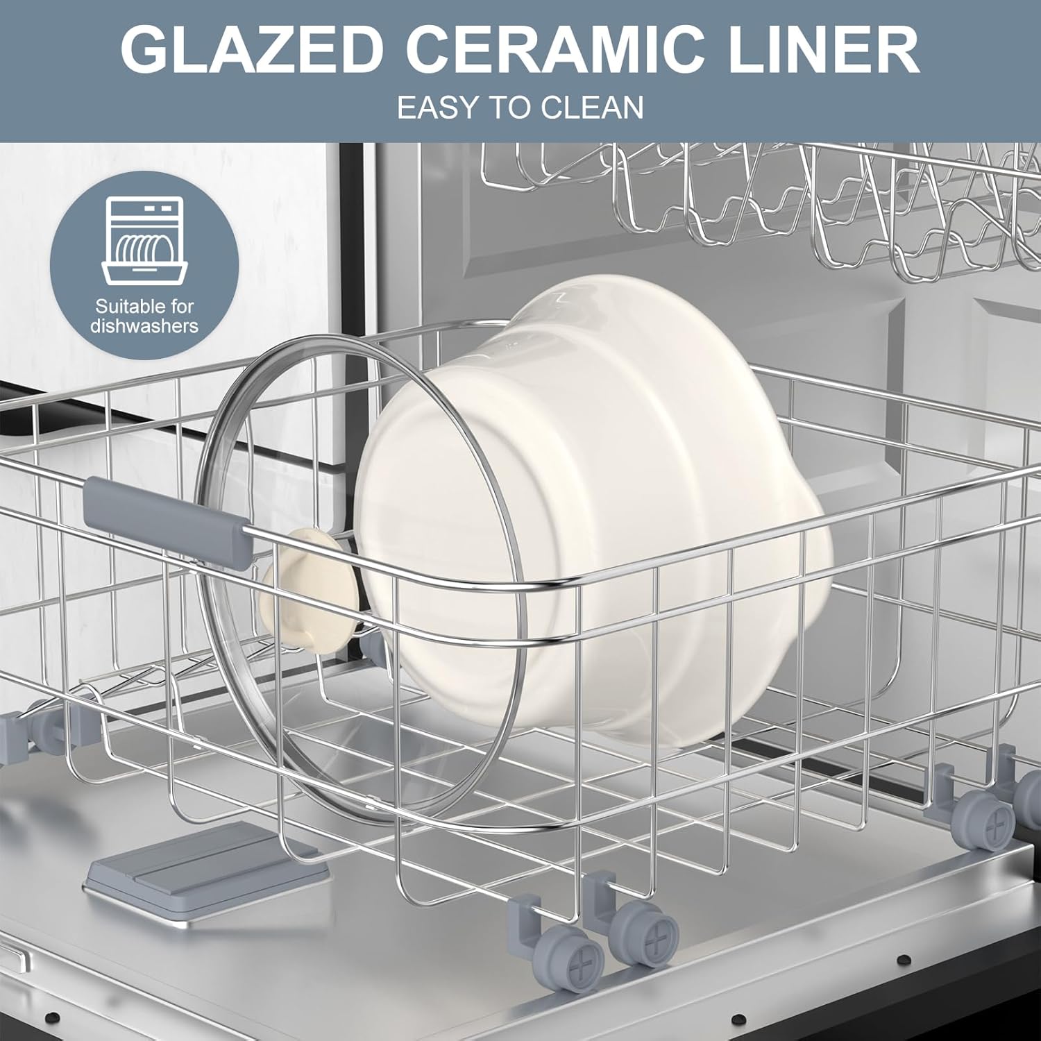 - DISHWASHER SAFE - Easy cleaning mirror stainless steel made and dishwasher safe removable ceramic pot and glass lid are convenient to be cleaned in dishwasher with warm soapy water after use. The stainless steel heating base can be wiped clean with a damp cloth to maintain its original appearance. 100% REFUND/REPLACEMENT - MAGNIFIQUE provides a one-year limited warranty. If you encounter product malfunctions during this period, please contact us.