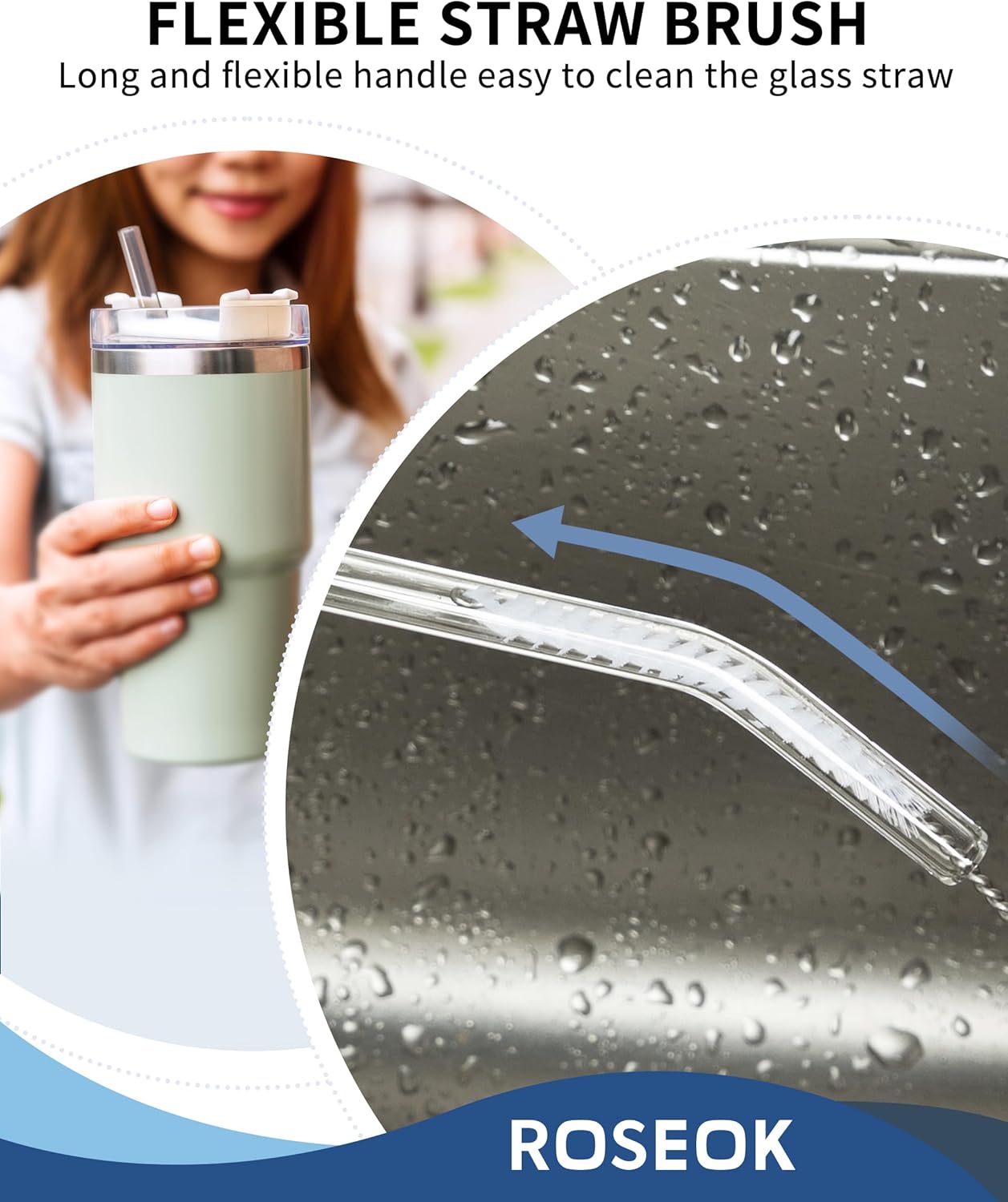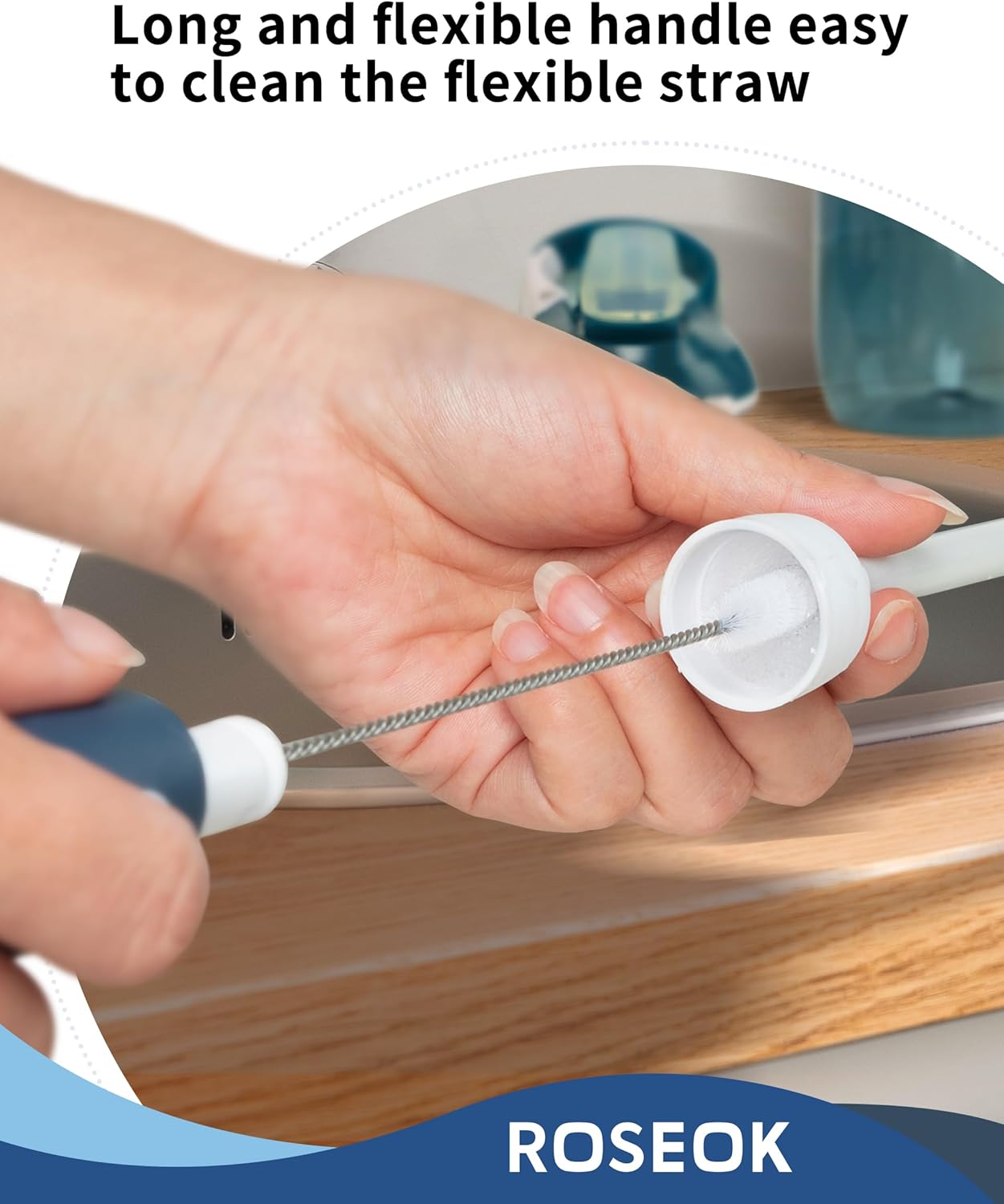 - TWO IN ONE: 2 in 1 bottle brush and straw brush designed with a 304 stainless steel straw brush stores in the larger one. Unscrew the end of thermoplastic rubber handle, thereβs a 10.2 inch straw brush.The straw brush is long and flexible,so it can be used to clean the straw.