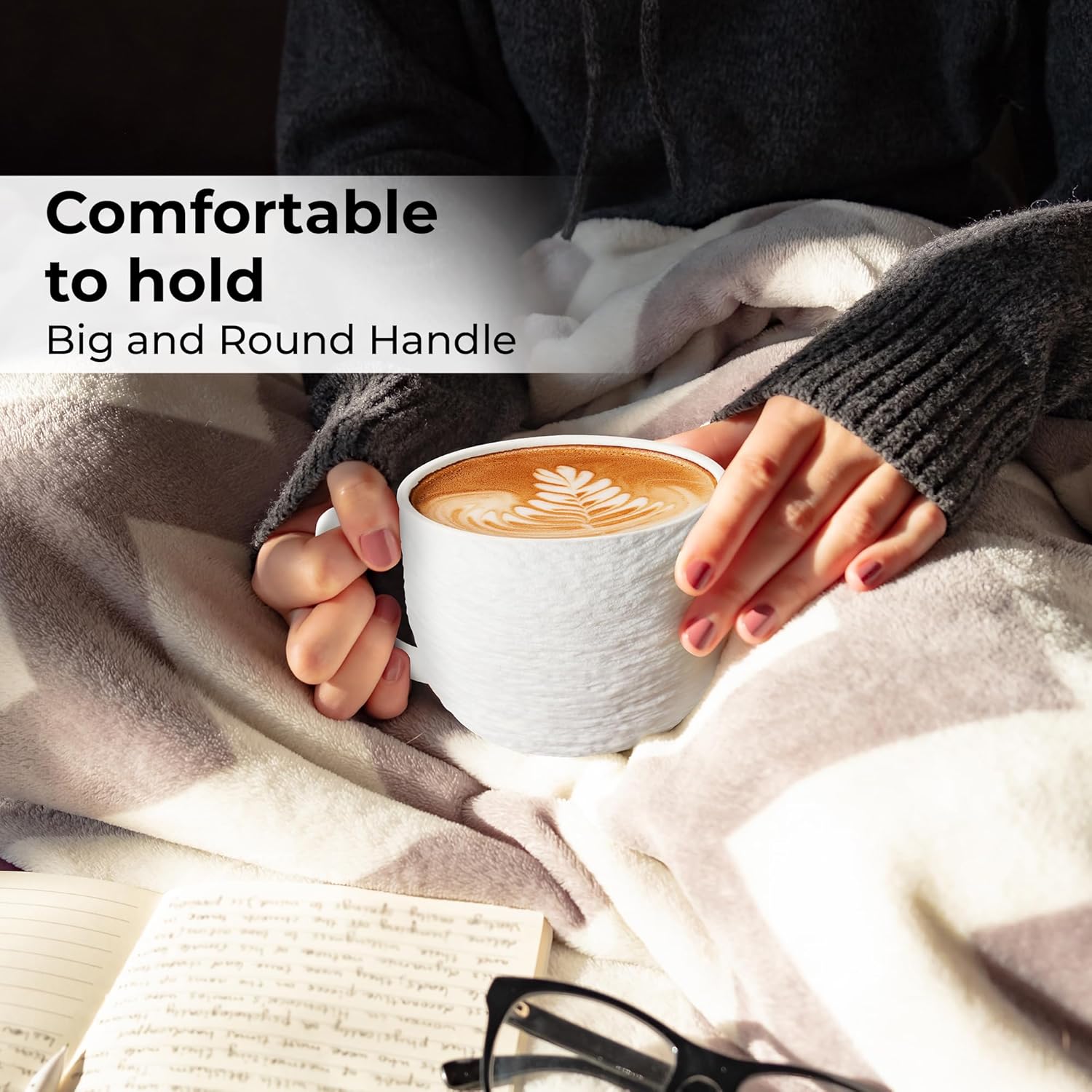 MIAMIO - Coffee Mug Set of 4 x 450 ml Cups/White Mugs Ceramic with Embossed Rock Texture for Coffee, Latte, Tea - Oasis Collection