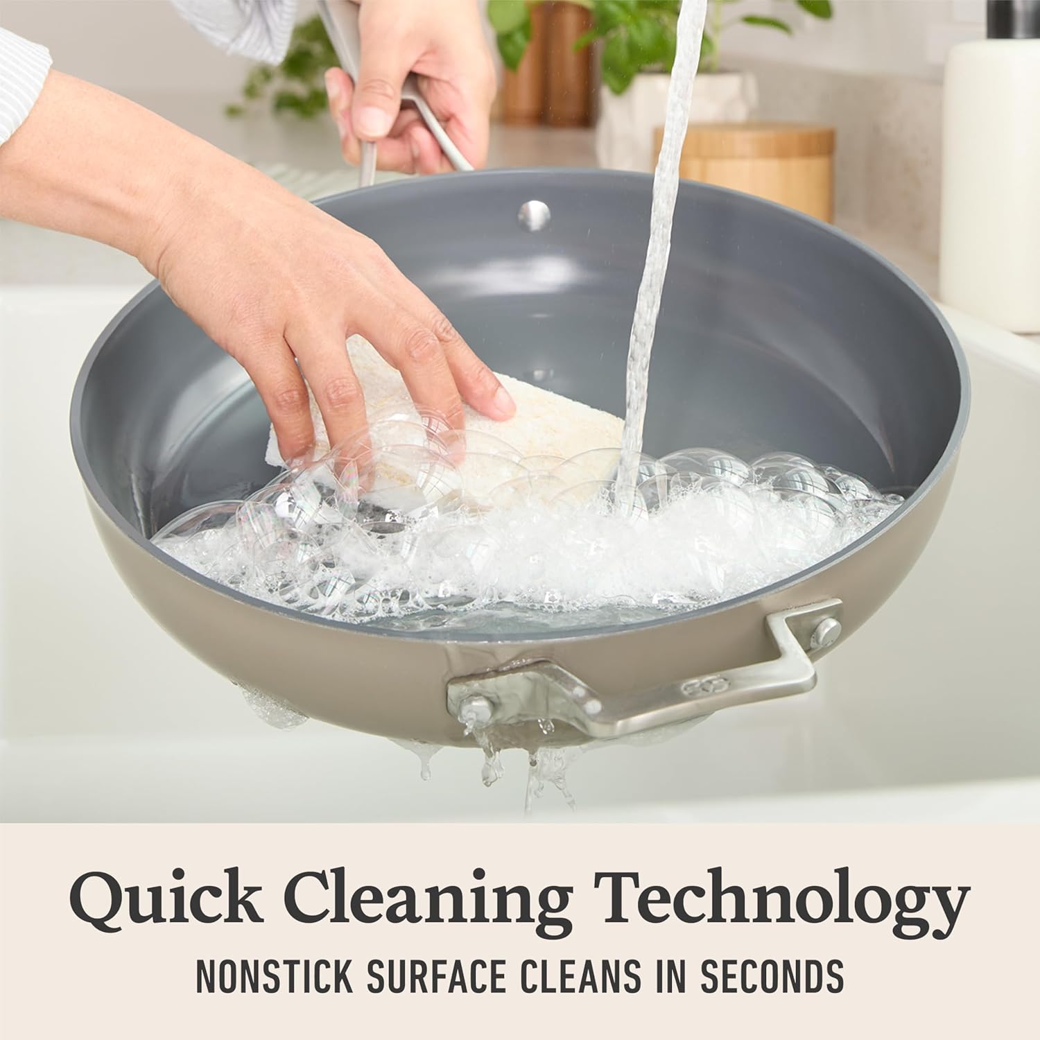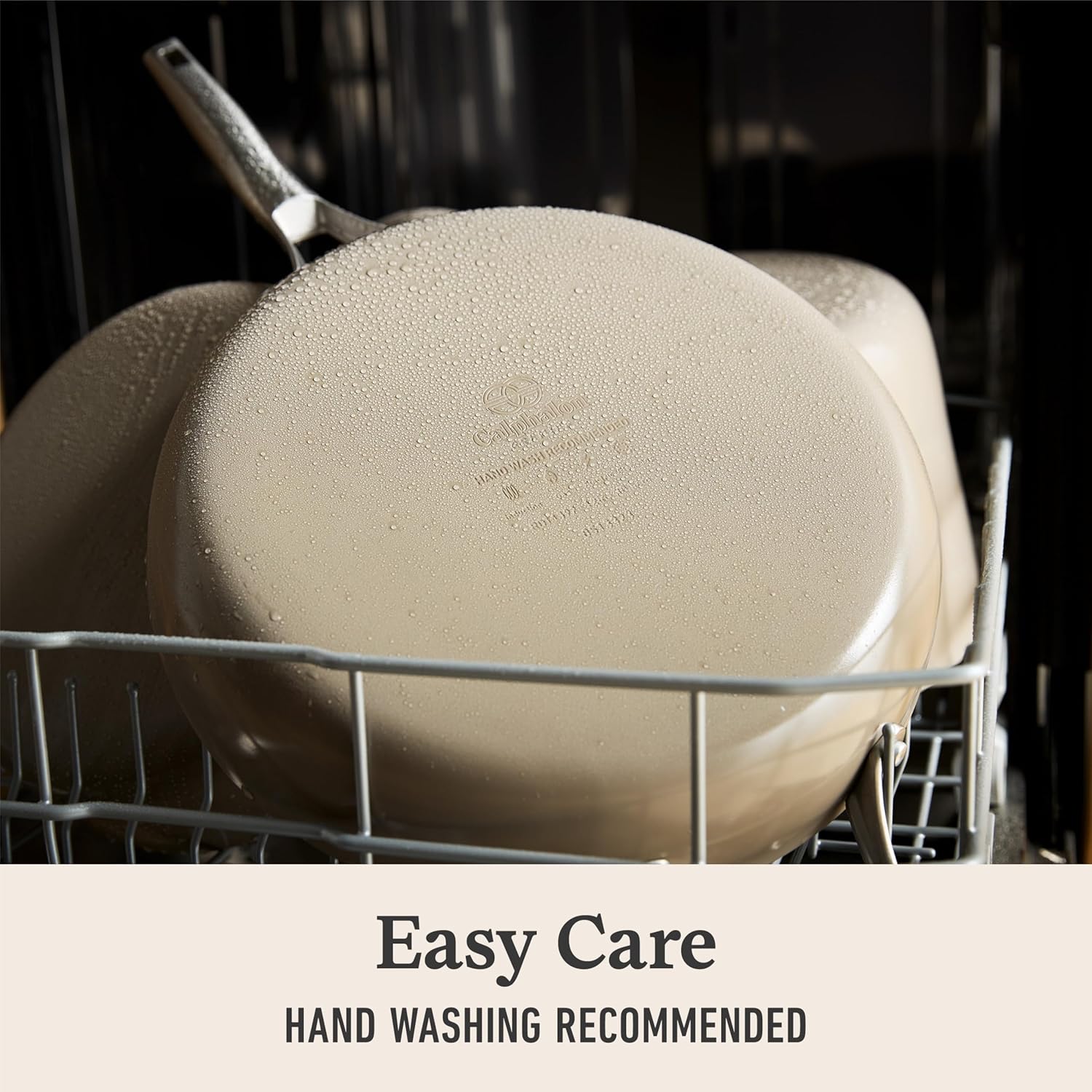 - Metal Utensil-Safe: Cooking from scratch deserves scratch-free cookware, so our ceramic pans have scratch-resistant interiors.
