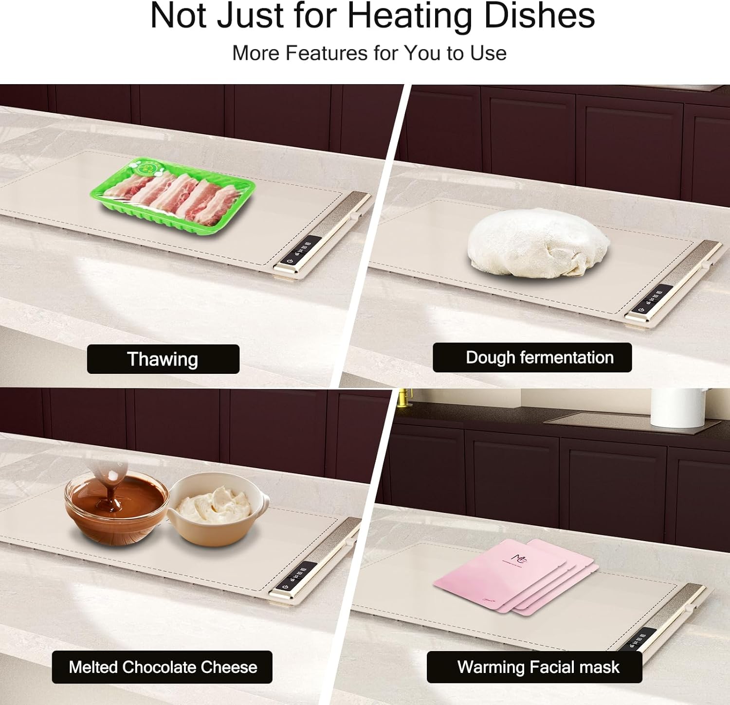 - Universal for All Seasons: This dynamic heating tray is not only a food warmer, but also a multi-functional home assistant. It can easily handle various heating tasks, quickly defrost food, heat facial masks, help dough fermentation, melt chocolate, and can meet your various needs throughout the year, making your daily life more colorful.