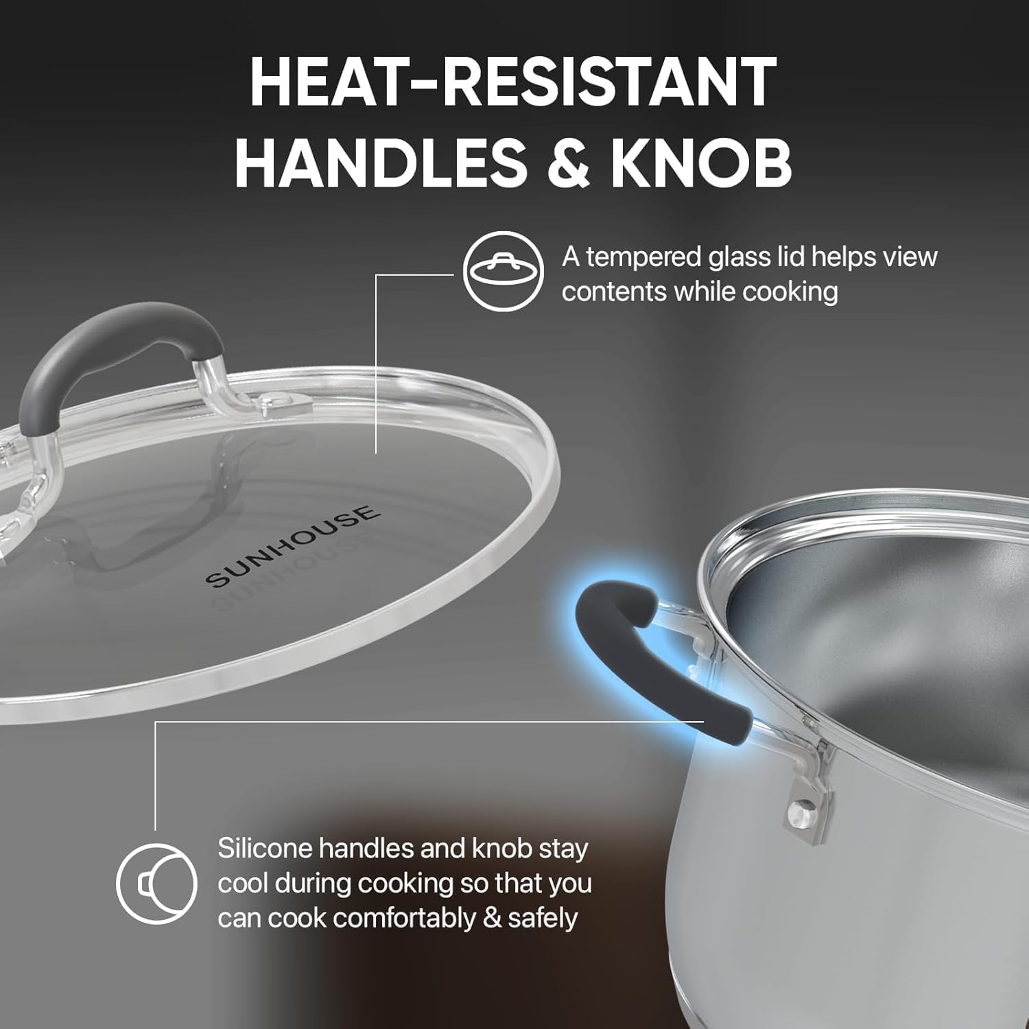 - Healthy Cooking Made Easy - Sunhouse's 3.1 Quarts stock pot which made of premium material is non-toxic and food-grade for better health, nutrition, and cooking. The high-quality stainless-steel cooking surface won't react with food or alter natural flavours for consistent cooking results