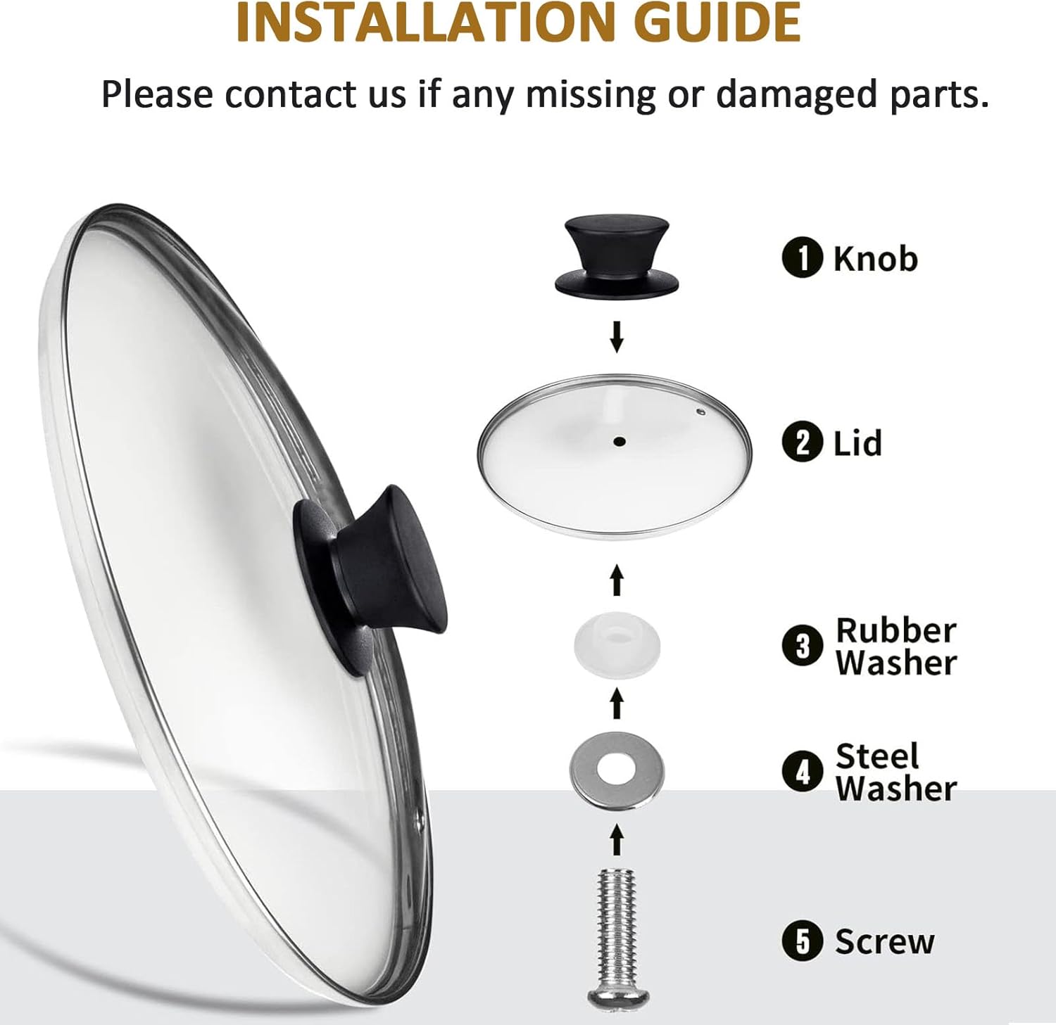 - ✔ TEMPERED GLASS & STAINLESS STEEL RIM – The glass lids are made of tempered glass,strong and durable. The edge of the lid is made with stainless steel material, make sure the safe cooking without rust (Please contact us if any broken during shipping)