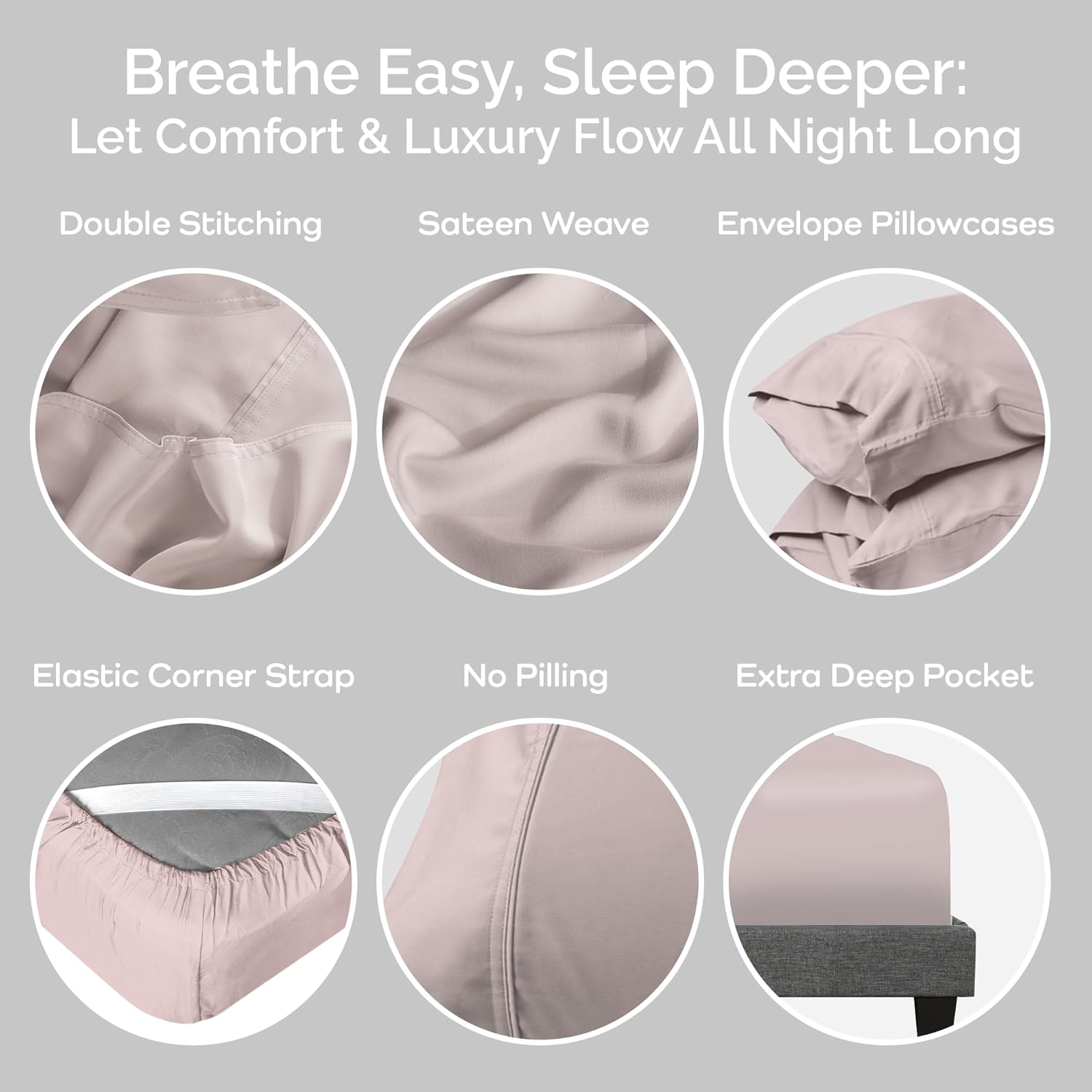 100% Viscose from Bamboo Sheets California King Size, Super Soft Bedding Set, 4PC Cooling Sheets for Hot Sleepers, Vegan Silk Moisture Wicking, Organically Grown Bedsheet, Blush - 72" x 84"