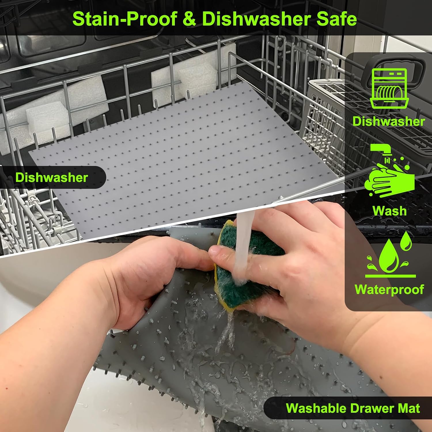 - 【Zero Sliding Guaranteed with Raised Dots】Spices Drawer Organizer made of Premium silicone material also the patented designe have raised points and grip-enhanced surface that helps keep seasoning jars in place, preventing them from sliding or shifting. so no worry spice bottles move all over in draw.