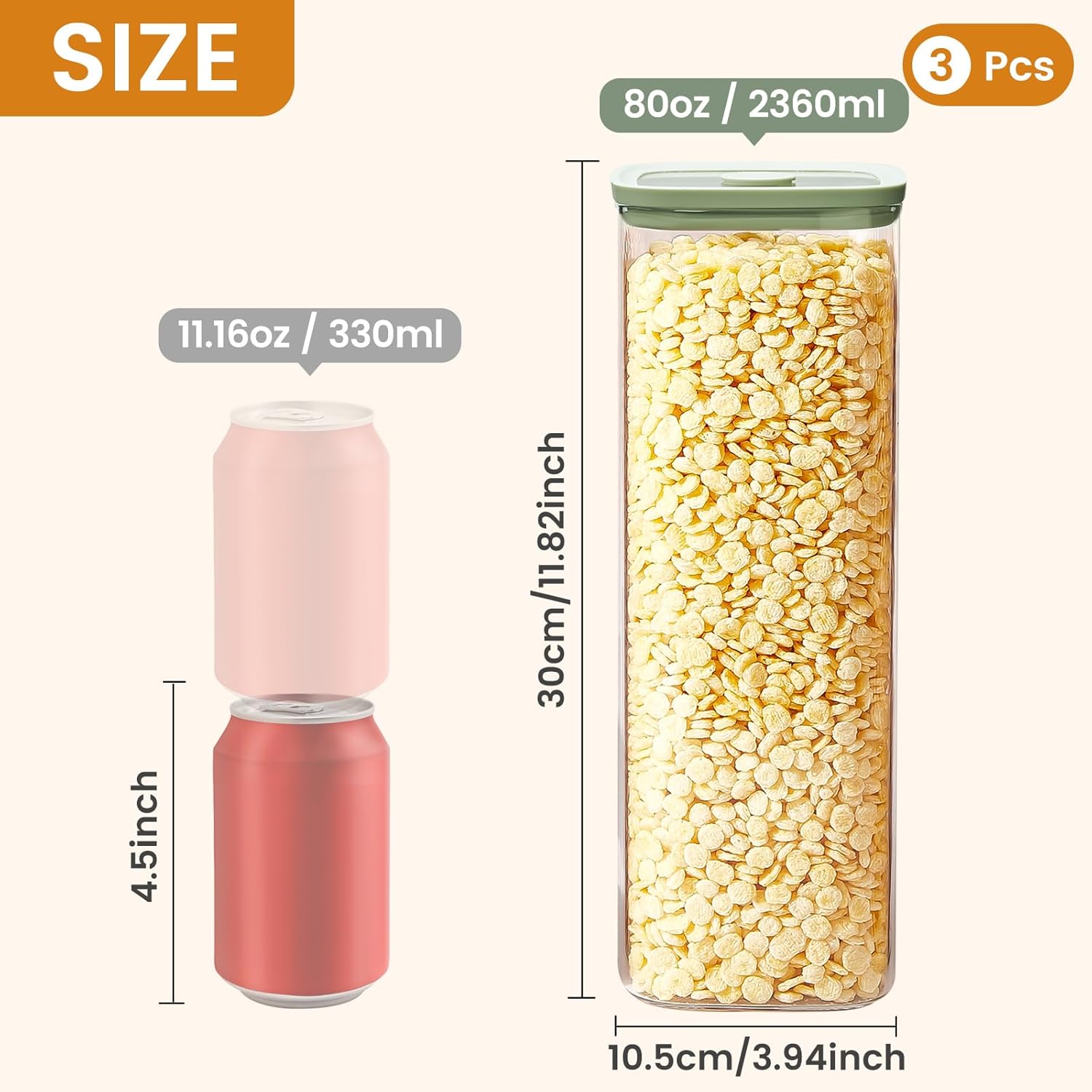- 【Ideal for Storing Large Amounts of Food】This storage jar is up to 11 inches high and the width increases to 4 inches, which is large enough and perfect for storing different types of dry goods, including pasta, noodles, flour,sugar, cereal and more. Keep your kitchen neat and organized and away from clutter.