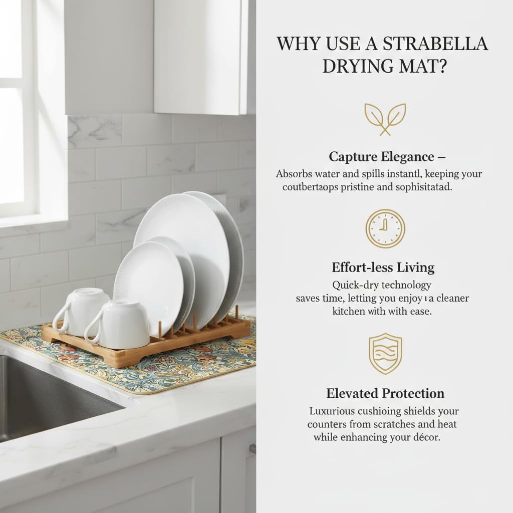 - MULTI-PURPOSE: Elevate your kitchen experience with our Multi-Use Dish Drying Mat. Its versatile design makes it perfect for drying dishes, and glassware, or even as a protective surface for countertop appliances. Streamline your kitchen tasks with a single, versatile solution.