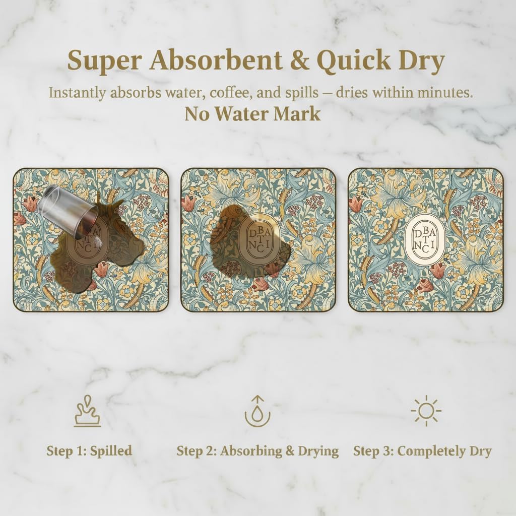 Dish Drying Mat Super Absorbent – 16" x 18" Coffee Mat for Countertops – Non-Slip Drying Mat for Kitchen Counter – Easy to Clean Water Absorbent Mat – Quick Dry Dish Mats (Botanic Garden)