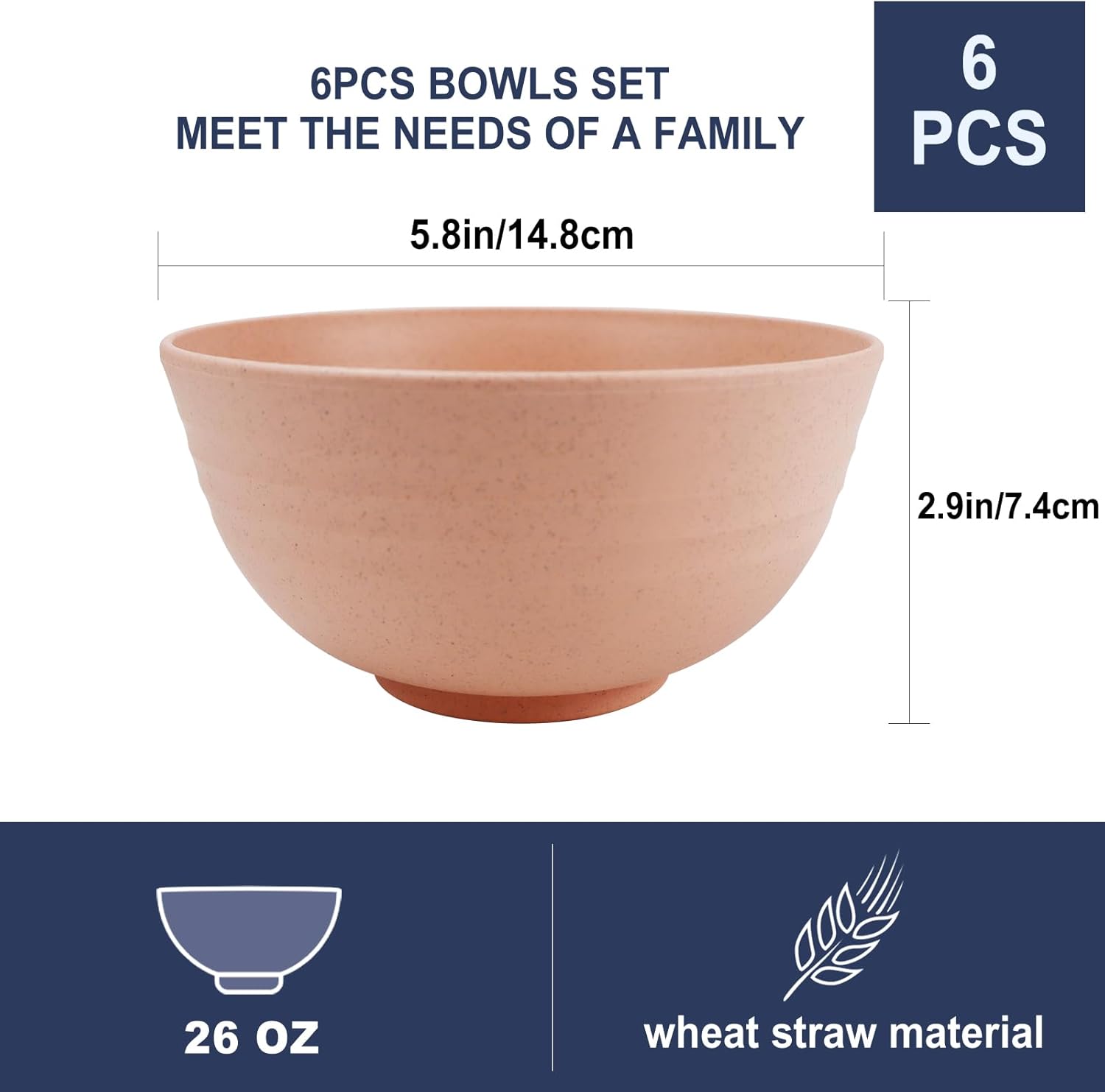 - [Elaborate Design]:Upgrade your dining experience with our wheat straw bowls! We've enhanced the design with thicker and smoother rounded edges, providing a comfortable hold. The 26 oz capacity is perfect for everyday use at home, work or school.