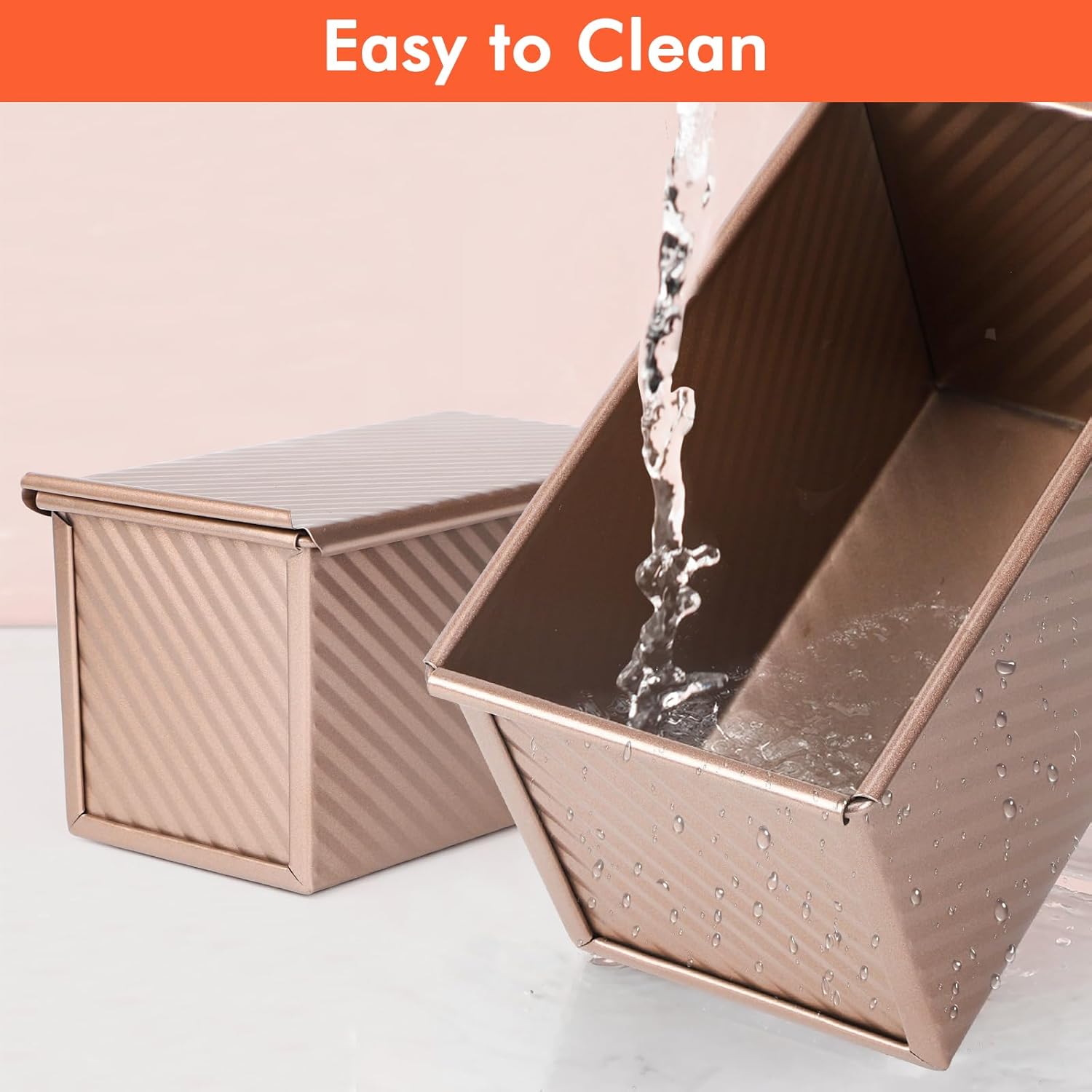 Beasea Pullman Loaf Pan with Lid, 2 Pack 1 lb Non-Stick Bread Loaf Pans Carbon Steel Bread Toast Box with Cover for Homemade Bakeware Bread Toast Oven Baking - Rose Gold