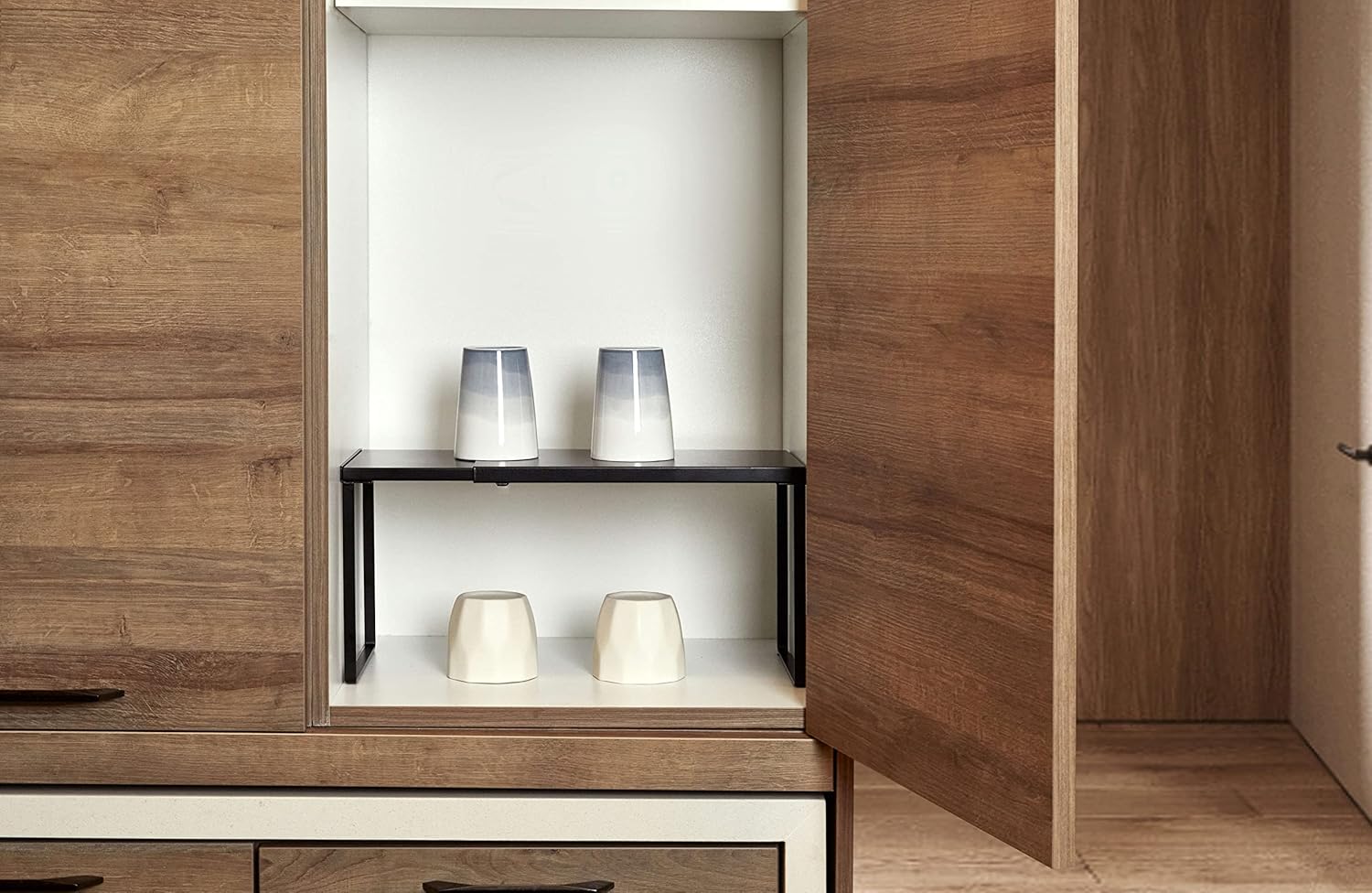 Nxconsu Cabinet Shelf Expandable Organizer Riser Rack for Kitchen Pantry Cupboard Under Sink Countertop Home Organization Extra Storage Space Saver Heavy Duty Metal Edgeless Design Black Extra Large