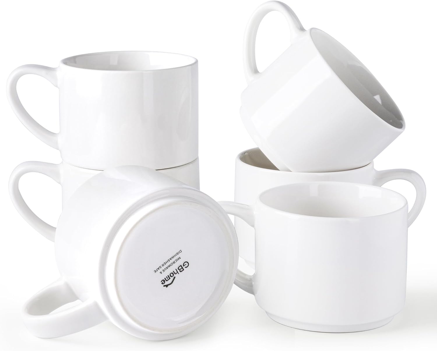 GBHOME 14 OZ Coffee Mugs Set of 6, Stackable Ceramic Mugs for Men, Women, Modern Coffee Mugs With Stable Base for Latte,Tea,Cappuccino. Dishwasher & Microwave Safe, White