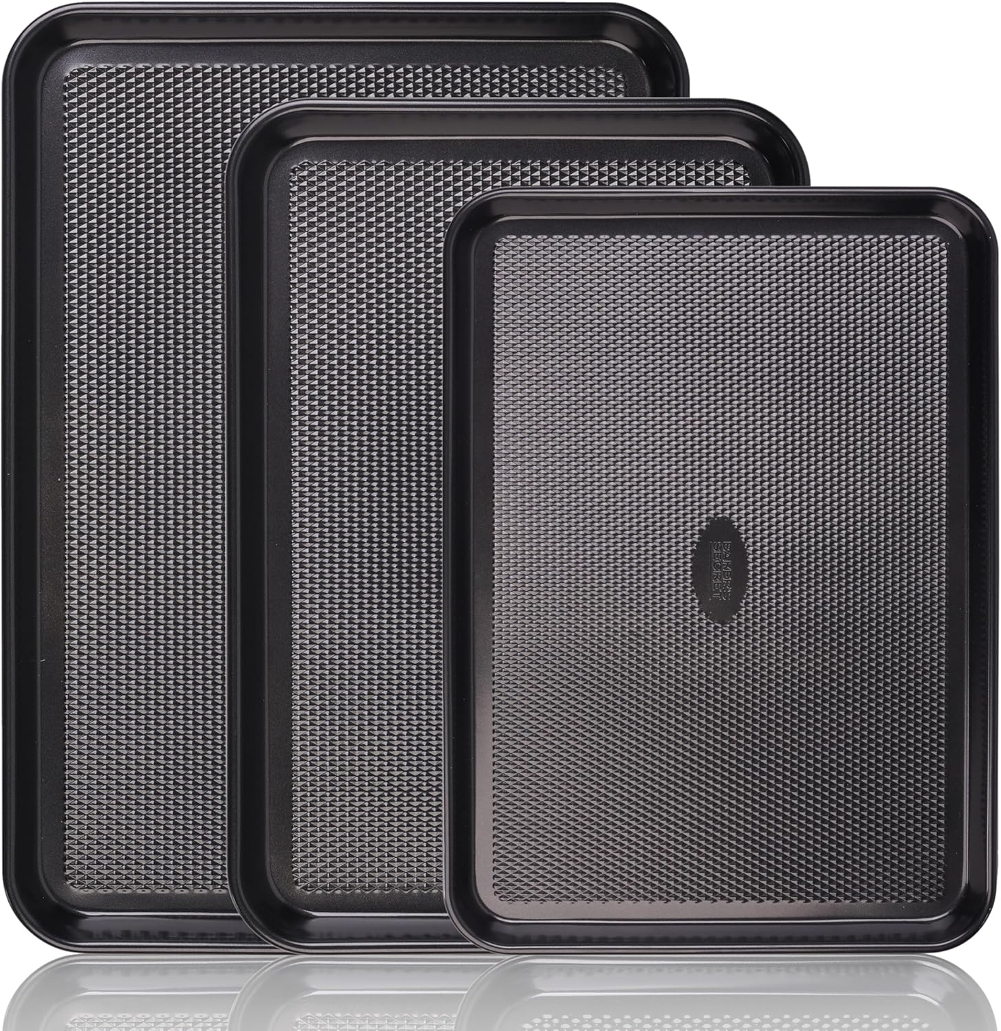 Baker's Secret Baking Sheet Pan Set, 3x Cookie Sheets for Oven, Diamond Texture Premium Air Flow Circulation, Set of 3 Baking Trays, Extra Thick 0.6mm with Diamond Base PFOA, PFOS, PTFE and PFAS free
