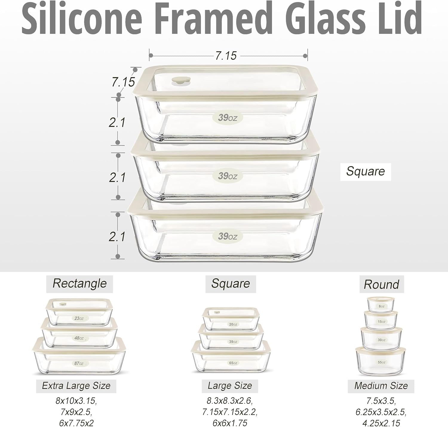 Urban Green Glass Food Container Set with Glass Lid, 3 Pack, Food Storage Containers Set, Airtight, LeakProof, 100% Plastic Free, Meal Prep Containers (White Color)