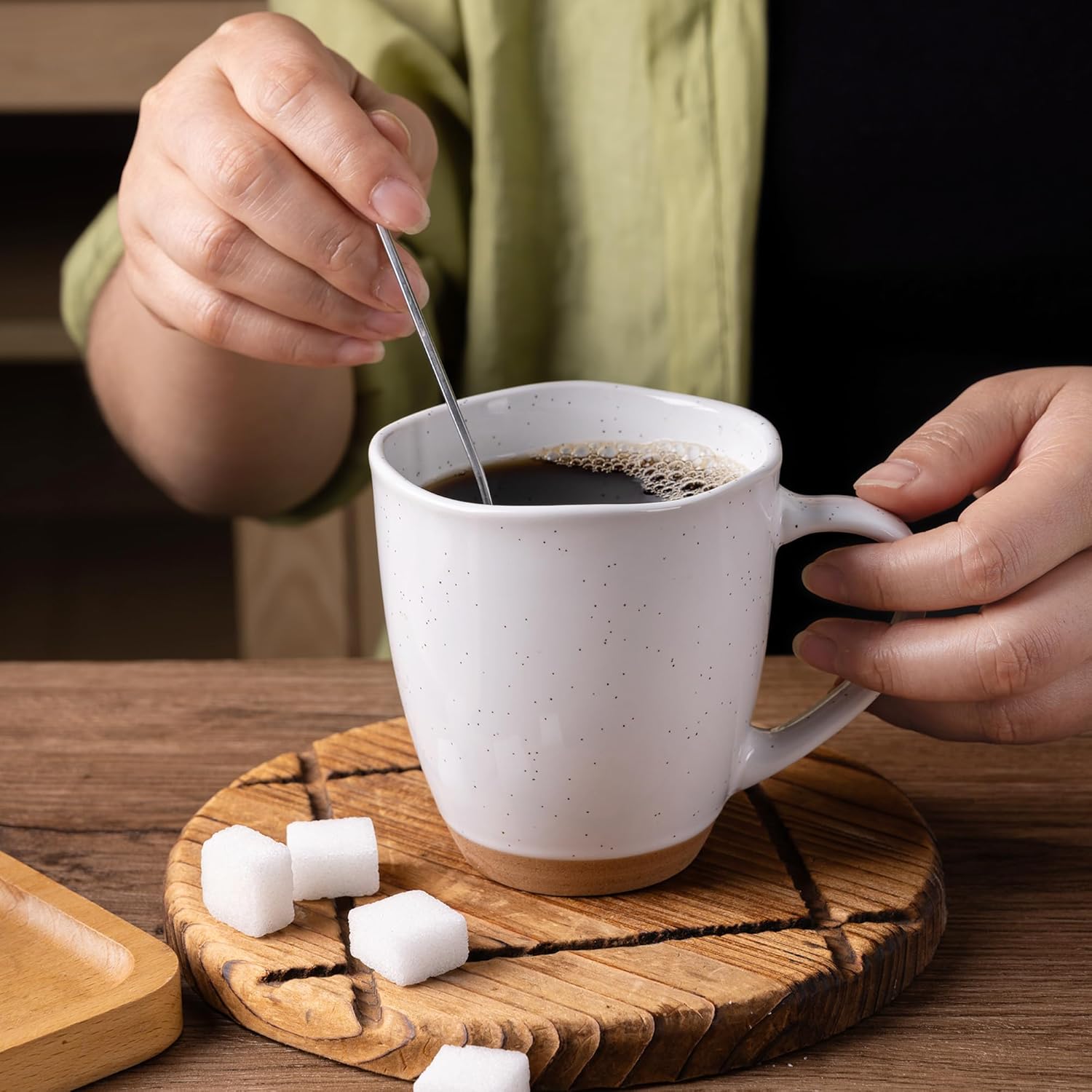 - UNIQUE DESIGN: These mugs feature a unique wavy rim and a clear, speckled glaze finish. Each piece with handcrafted decorative is beautifully individual, adding a touch of sophistication to your table setting, making them a stunning addition to any kitchen or dining room