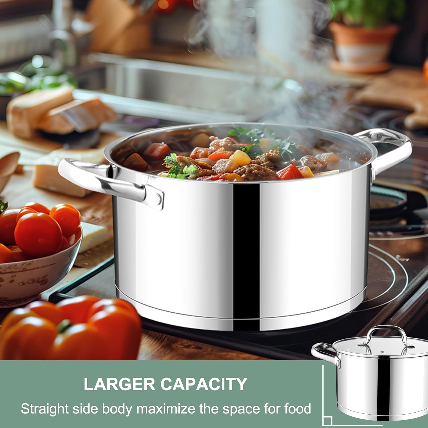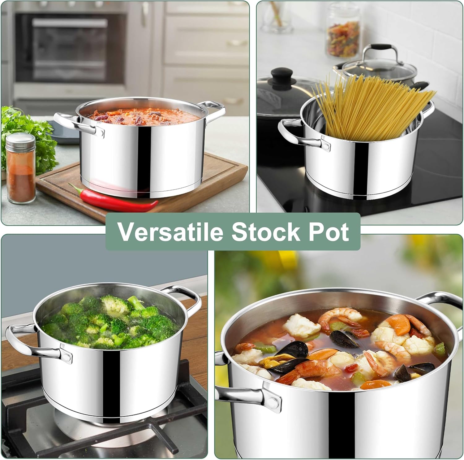 - induction/gas/electric5QT STOCKPOT FOR ALL STOVES: Right size to boil enough pasta for a family of 4, Versatile for cooking different dishes, from steaming potatoes, making rice to braising stews, Straight side body maximize space to provide larger capacity for soup/sauce/rice, 3-Ply thick base compatible with most stovetops including induction/gas/electric/ceramics cooker/ceramics cooker