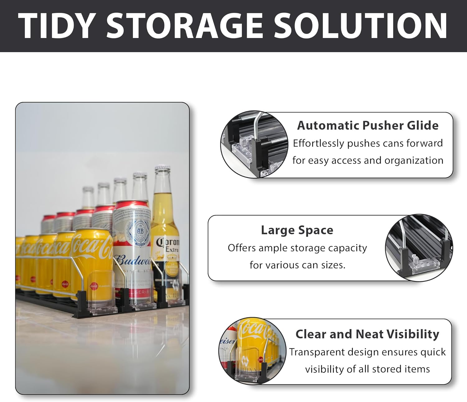 - Effortless Organization: Keep your space neat and tidy with the ACRILYX automatic can dispenser for fridge. The smart spring-loaded design gently moves drinks forward, making it easy to grab what you need while saving space and staying organized.