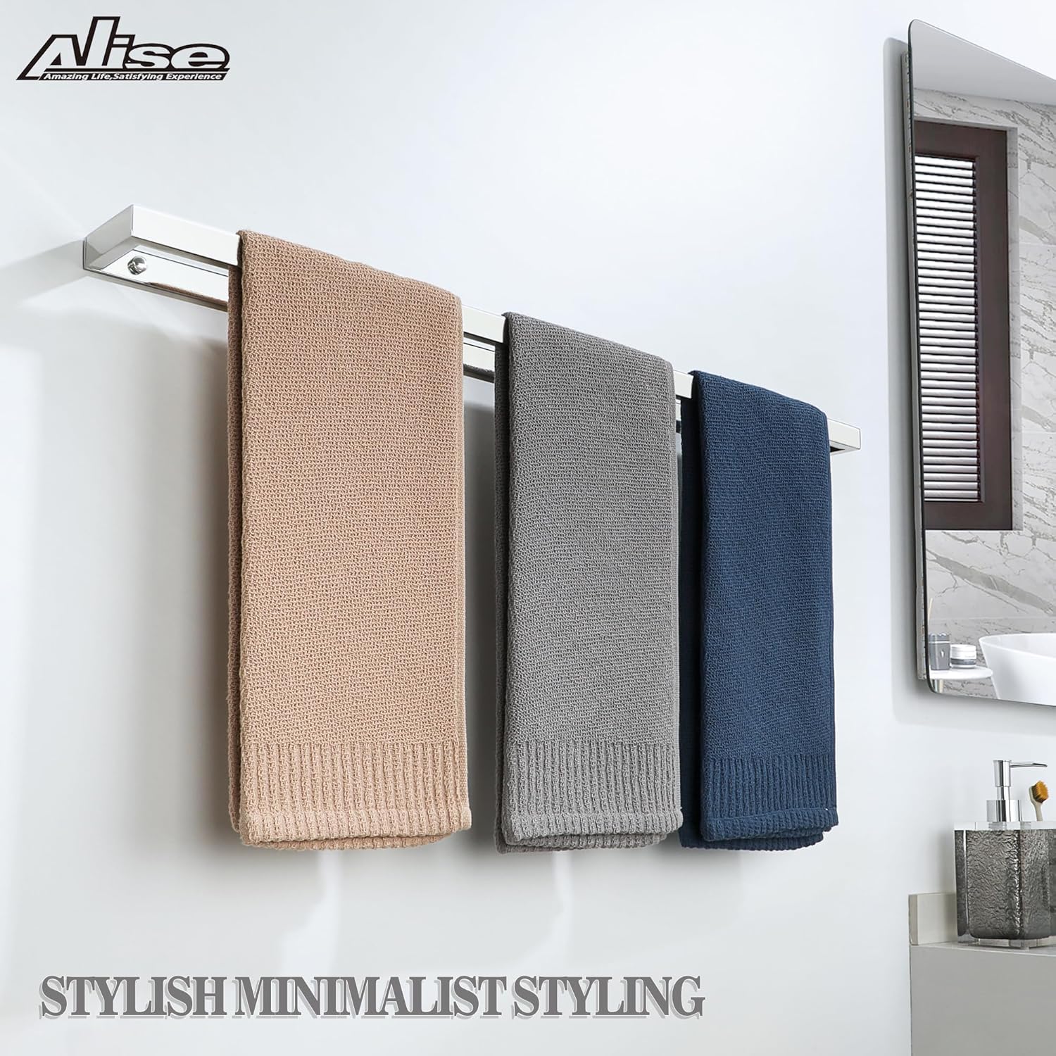 Alise Bath Towel Bar,Wall Mount Towel Holder Towel Rack Towel Hanger for Bathroom Lavatory,28 Inch SUS304 Stainless Steel Towel Rail,Polished Chrome GJF070-C