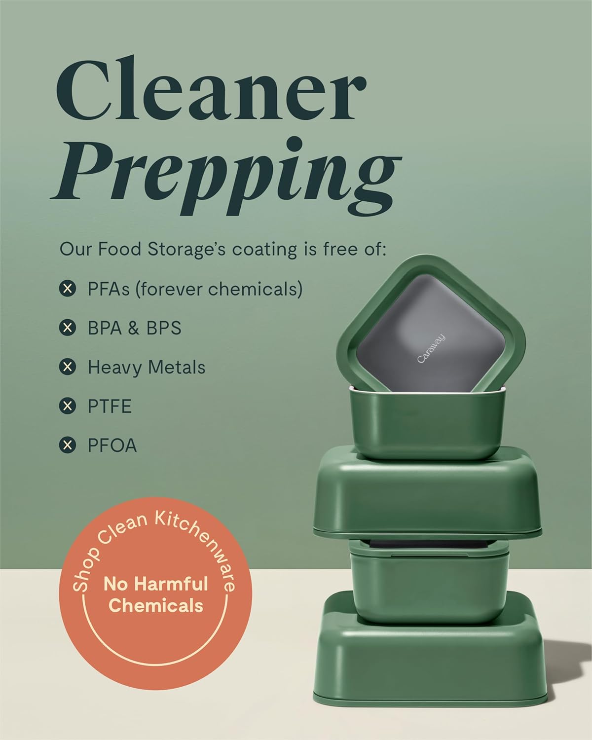 - FOOD STORAGE TRIO: Look forward to leftovers with Caraway’s easy-to-store, non-toxic food storage containers. This set includes the Small, Medium, and Large container all featuring non-toxic, non-stick, ceramic-coated glass, this durable container makes prepping, storing, and serving easier than ever.