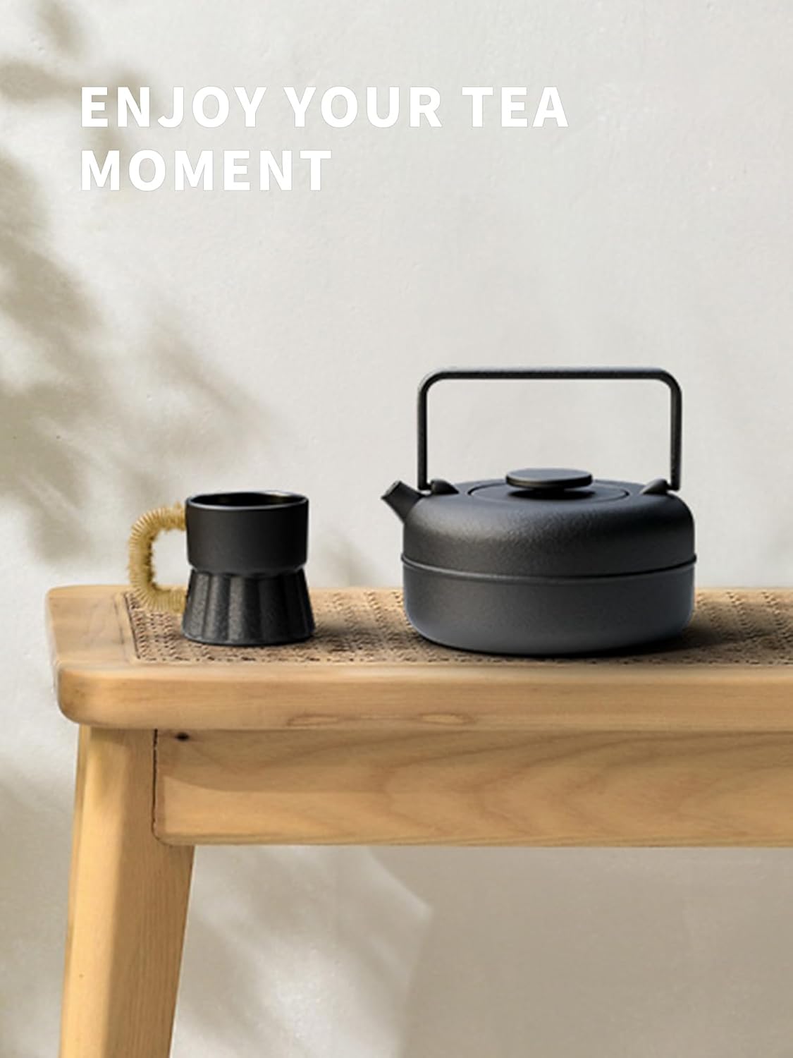- ๐ต Small Cast Iron Tea Kettle - Teapot FULL-LOAD CAPACITY: 27 oz / 800 ml, RECOMMENDED BOILING CAPACITY: 24 oz / 700 ml. The cast iron teapot allows gradual and even heating. It will help infuse the greatest amount of flavor from the tea leaves into the water. Cast iron teapot could break down the elements of Fe2+, which is beneficial to your body. Japanese cast iron teapot also has long heat preservation.