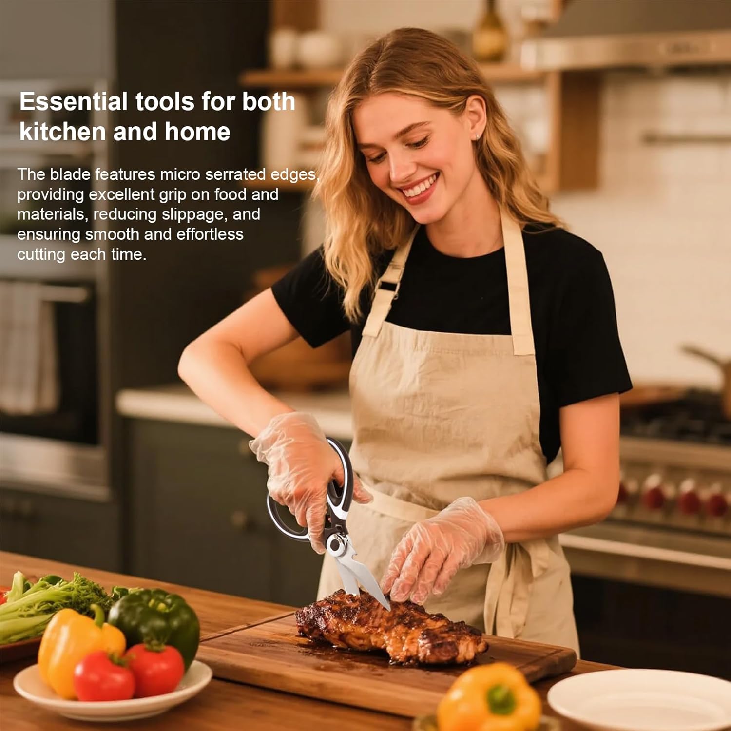 Kitchen Scissors Utility Chopping Scissor Professional Shears for Meat Cutting Sharp Kitchenad Shears Multipurpose Scissor for Food Outdoor BBQ No Rust + 100 Pcs Plastic Gloves Disposable