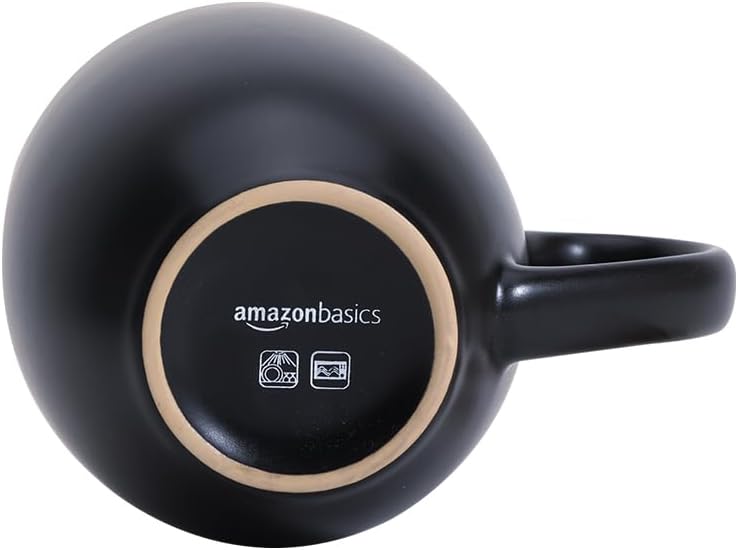 Amazon Basics 12-pack Matte Black Ceramic Coffee Mug, 16 ounces, Microwave-Safe, Stoneware, Commercial-grade