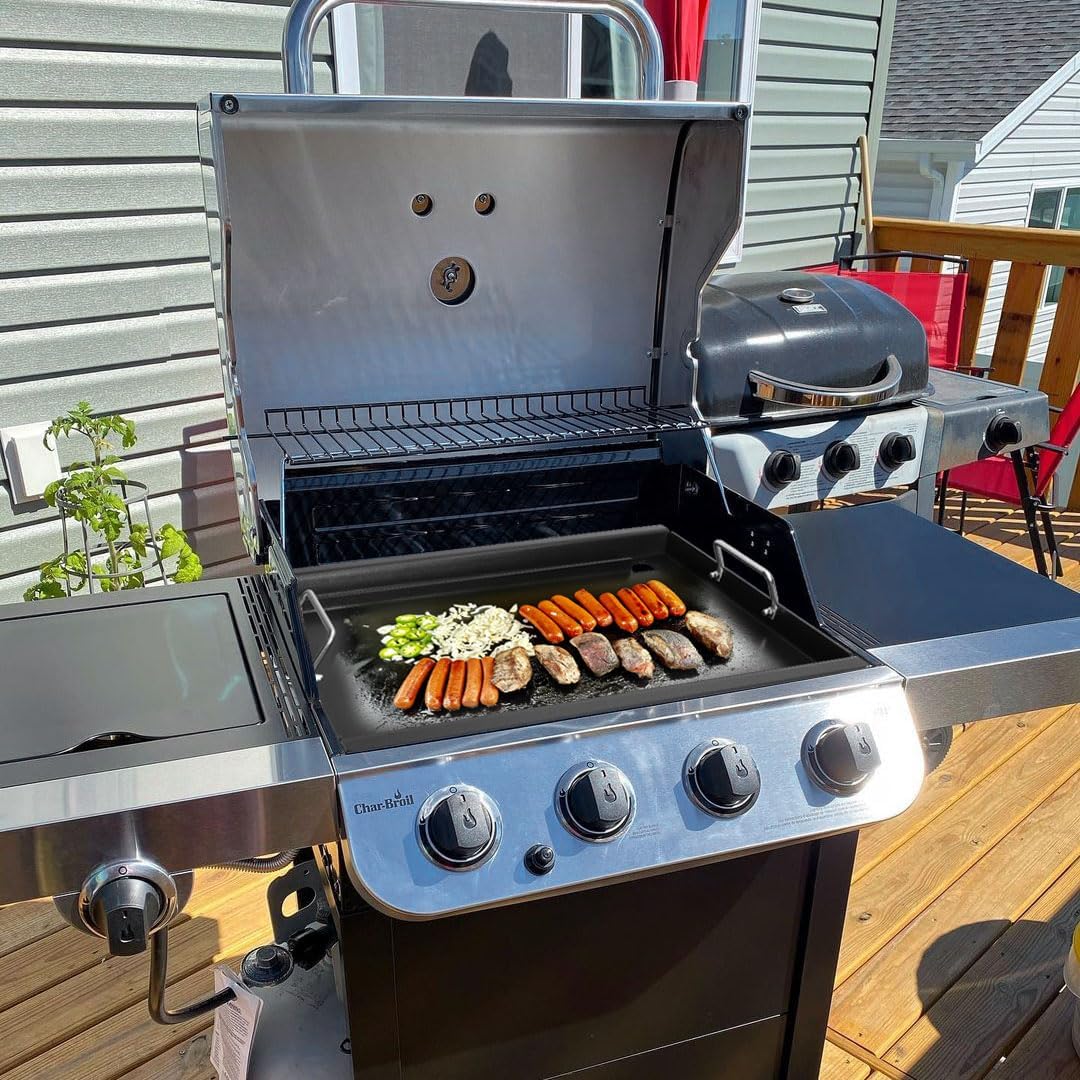 - 【Transform your grill into griddle】Enjoy the best of both worlds by transforming your Grill into a griddle in a matter of seconds. Simply remove your cooking grates and replace them with griddle insert to create food never thought possible in a grill, such as pancakes, eggs, fajitas and more. Heats your food evenly for great taste. Let you and your family enjoy BBQ more!