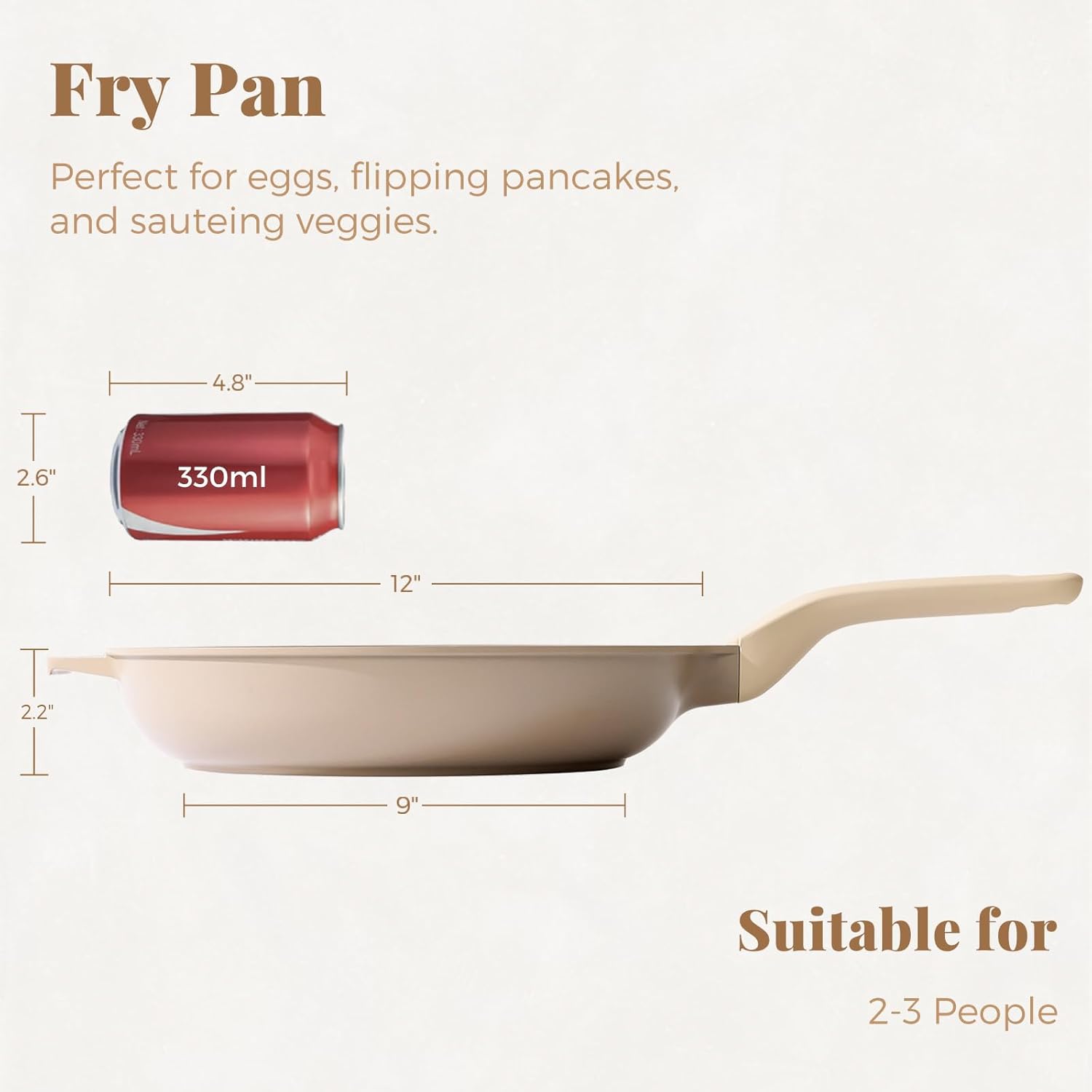Nonstick Frying Pan, 8/10/12 Inch Stain/Scratch/Crack Proof Chef Pan, Healthy Skillet, PFOA Free Omelet Pan, Dishwasher & Oven Safe, Induction Compatible (12-Inch, Natural Linen)