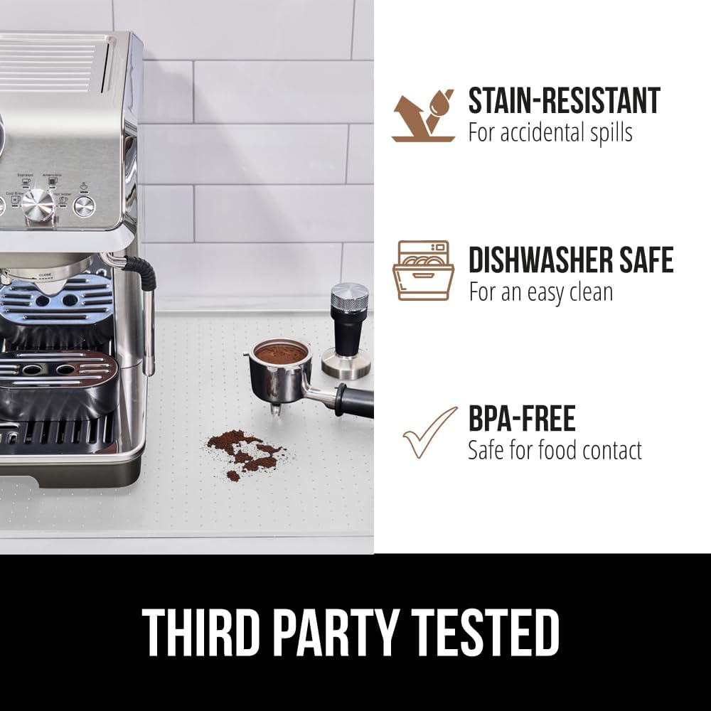 GORILLA GRIP Silicone Coffee Mat, Espresso Drink Bar Station Accessories, Use Under Machine, Waterproof Heat Resistant Multi-Use Dish Drying Mats, Stays in Place, Kitchen Home Decor, 11.5x18.5, White