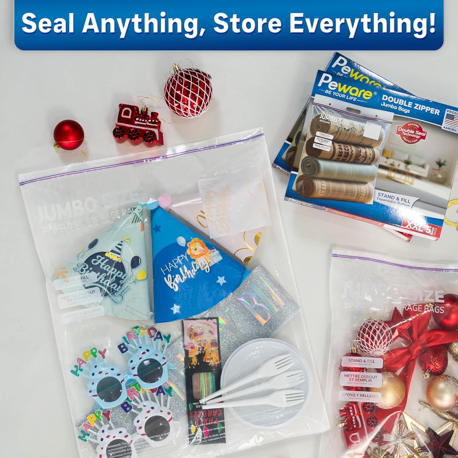 Large Storage Bags, 16"x20" Jumbo Plastic Bag, BPA Free, 3.5 Gallon XL Zipper Lock Baggies for Clothes Pillow Travel Moving - 50 Roomy Bags
