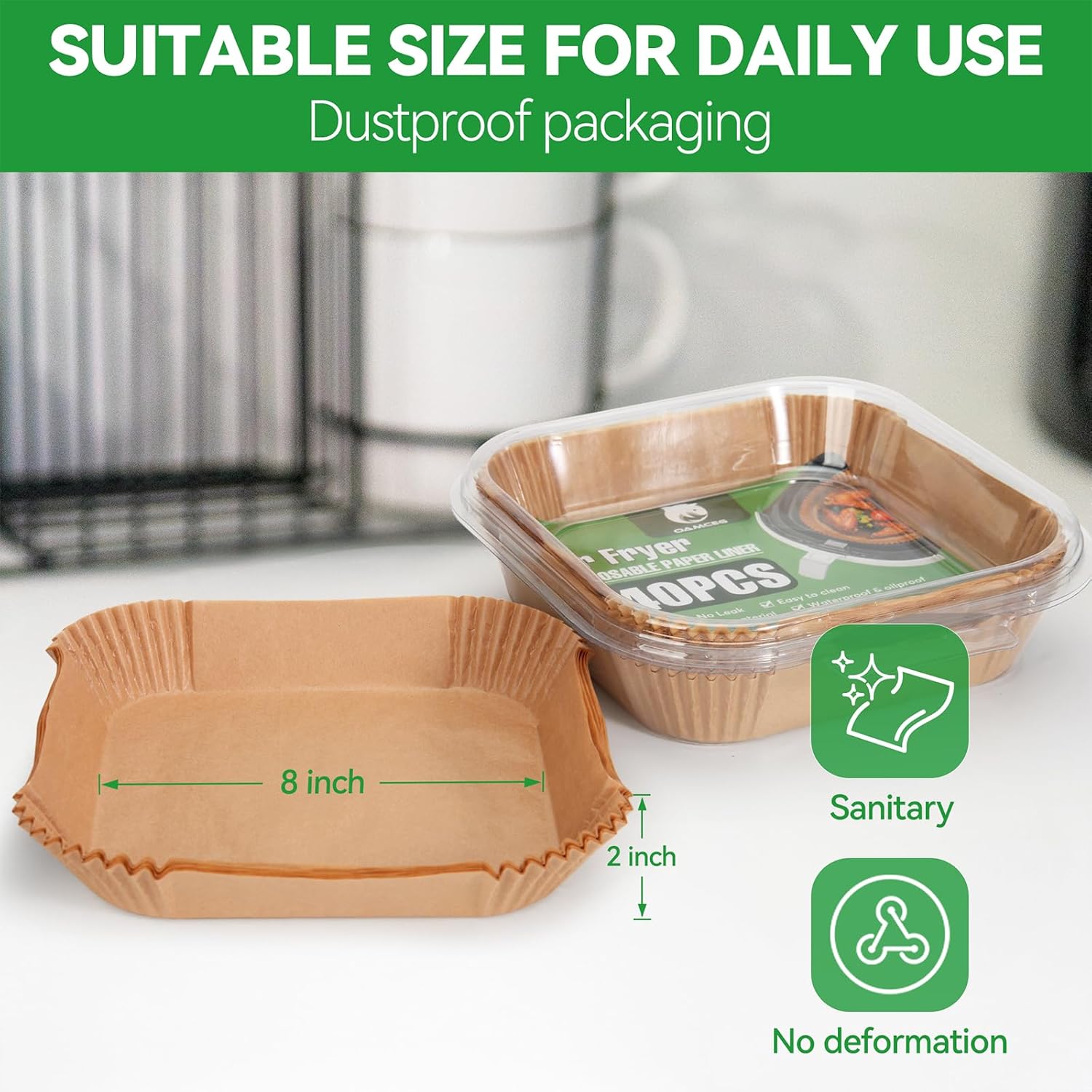 - GREASE AND WATERPROOF: Our air fryer liners are designed to prevent tearing or burning during baking, for an enhanced and flavorful cooking experience. They avoid the grease and food crumbs left in the bottom of the container, saving you the hassle of cleaning.