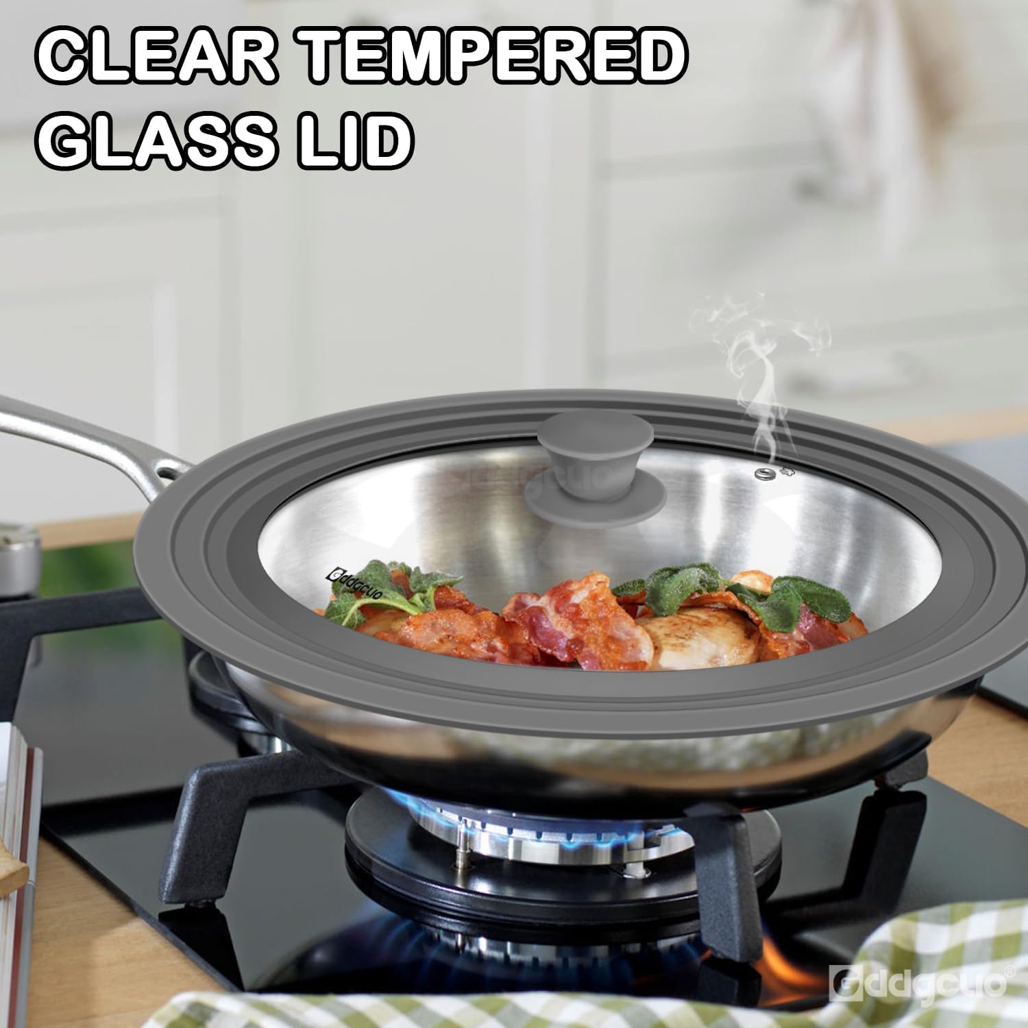 - FOOD GRADE MATERIAL: GDDGCUO 13 inch Large Universal pan lid made of Food Grade Silicone οΌ High Temperature Tempered Glass, Heat Resistant UP to 450Β°F, durability