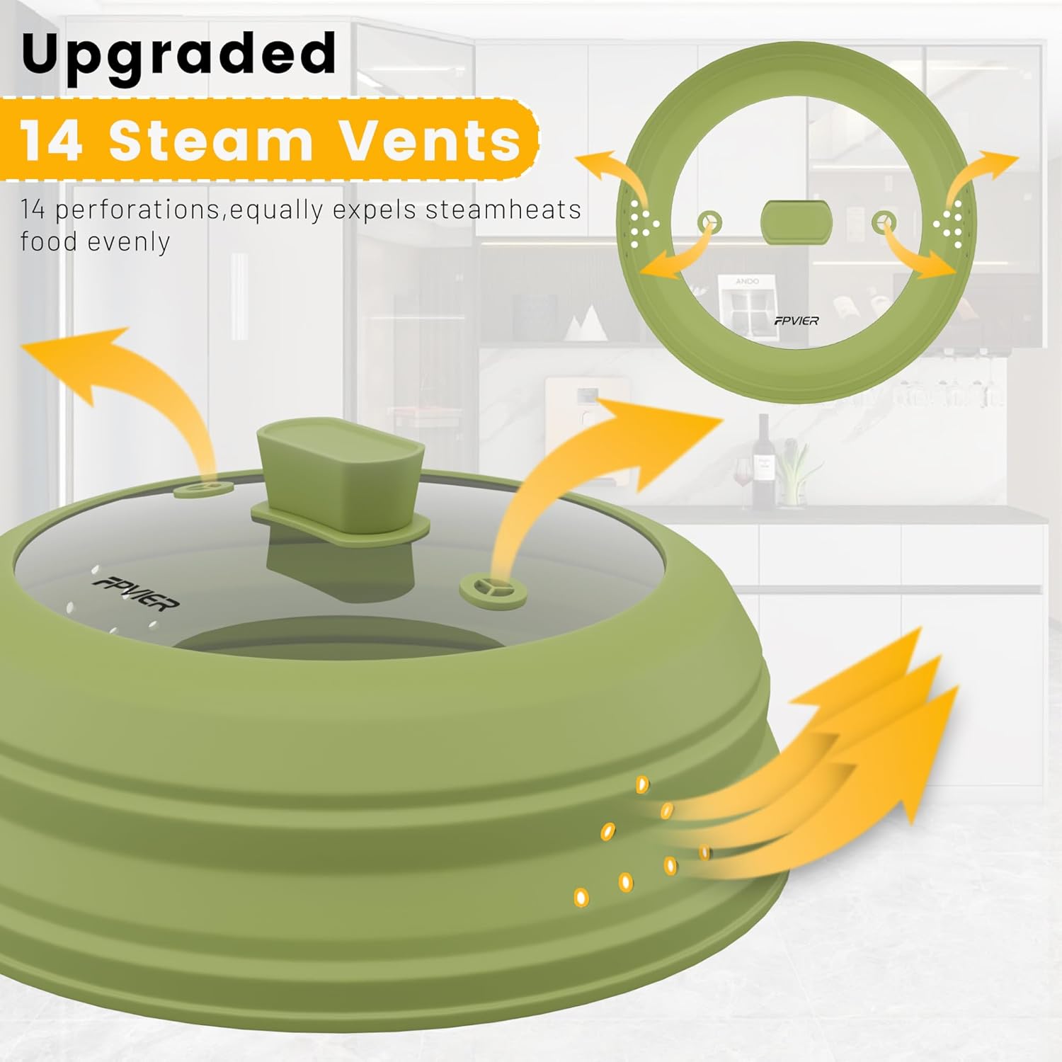 - 【Patent Collapsible Design】Experience the excellence with FPVIER's Patent Collapsible Silicone Dome, the diameter is 11.8inch (29.97 cm), uniquely crafted to cover plates & bowls from 6"-11" with ease, providing a big surprise in the compact storage form.