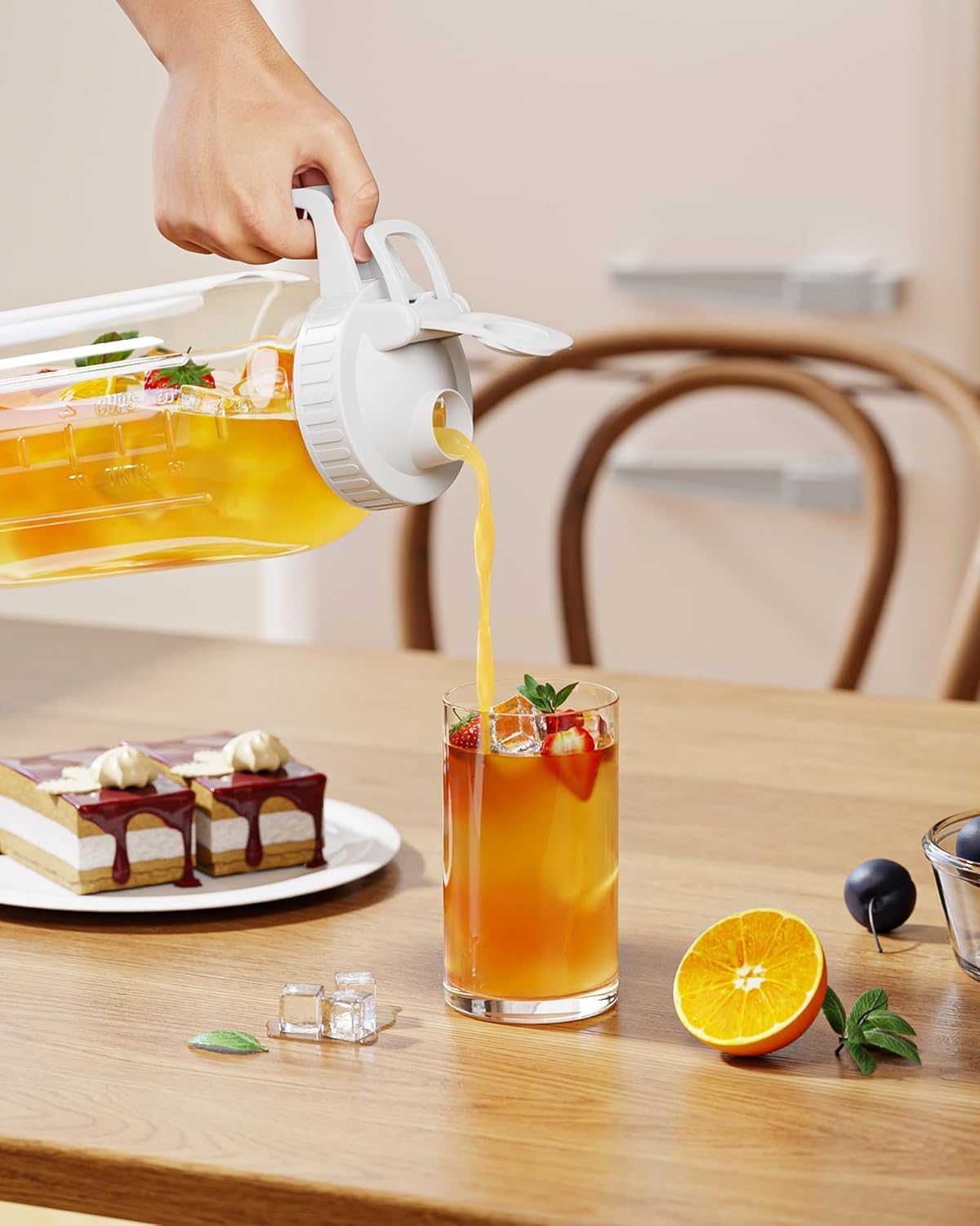 - Keep Your Drinks Fresh and Flavorful: The 64oz glass pitcher features an airtight flip lid with a silicone seal, ensuring your favorite beverages stay fresh and flavorful while being leak-proof. Itβs designed for easy and convenient opening, pouring, and closing, making it perfect for storing your drinks