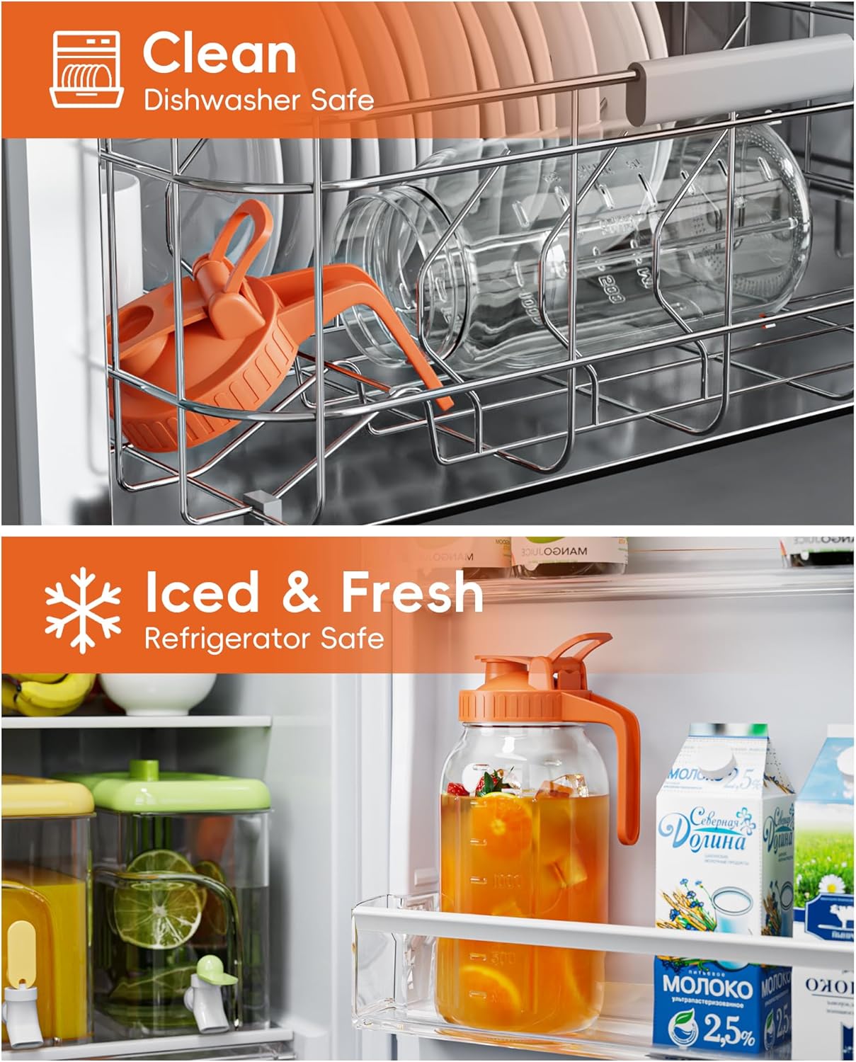 - Keep Your Drinks Fresh and Flavorful: The 64oz glass pitcher features an airtight flip lid with a silicone seal, ensuring your favorite beverages stay fresh and flavorful while being leak-proof. Itβs designed for easy and convenient opening, pouring, and closing, making it perfect for storing your drinks