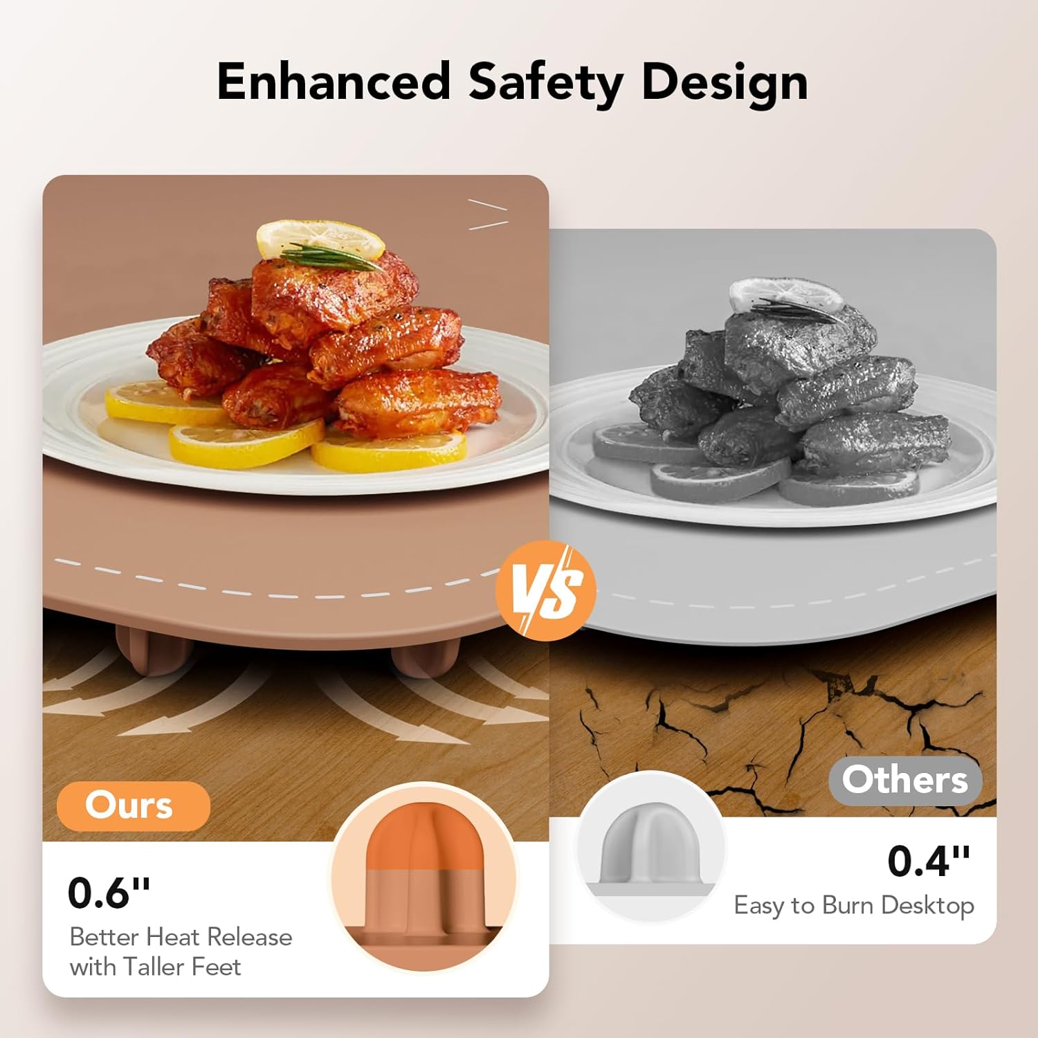 - [Durable & Easy to Maintain] Crafted from premium flexible silicone, our silicone food warmer mat is built to last. It's splash-proof, stain-resistant, and oil-resistant, and can be easily rolled up for storage. Cleaning is a breeze with just a quick wipe