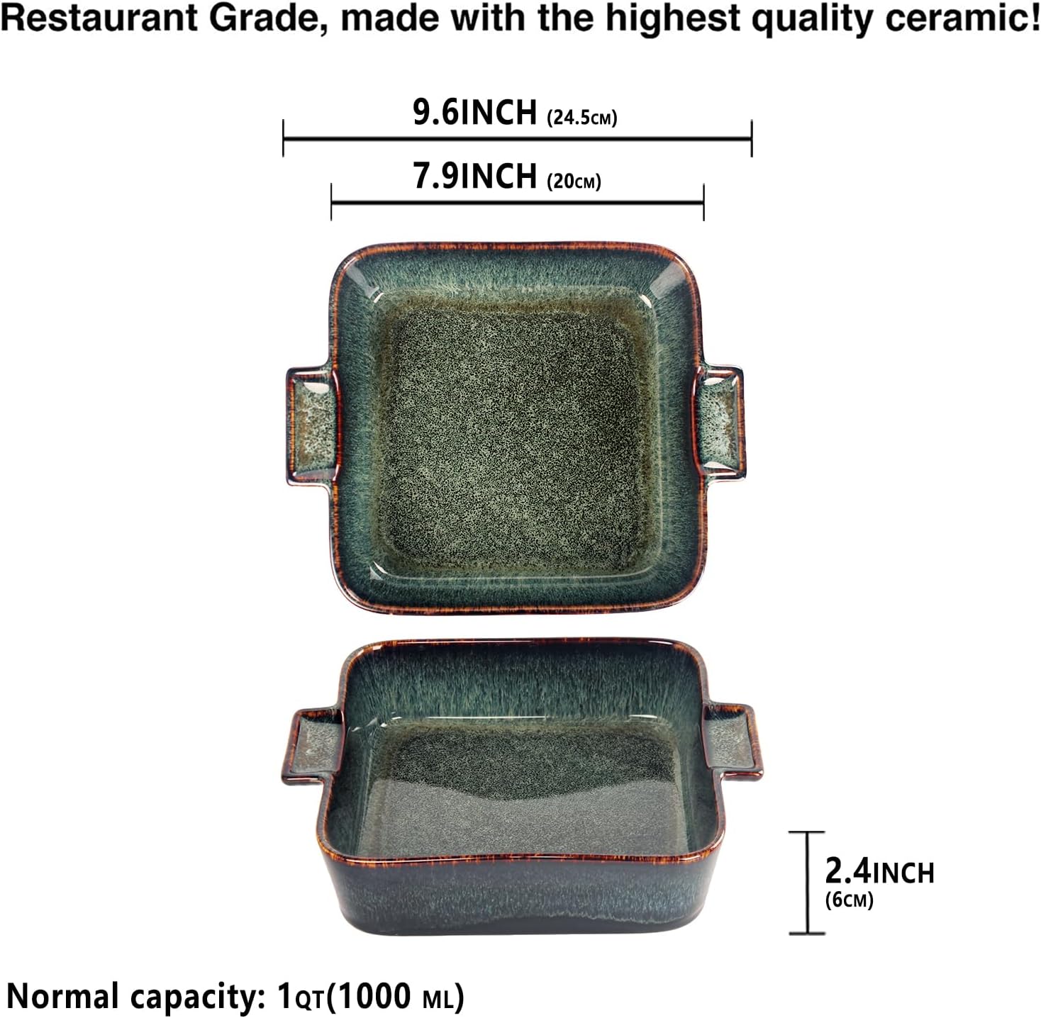 - Sizes to Fit Every Need - The oven pan set sizes to meet your various needs: 7.9β x 7.9β x 2.4β Inch, Includes double handles 9.6 Inch,Normal capacity is 1 Quarts(1000 ML), Pizza, bread, pasta, lasagna, roast beef, chicken and vegetables can all be prepared with it. It can also heat and store food.