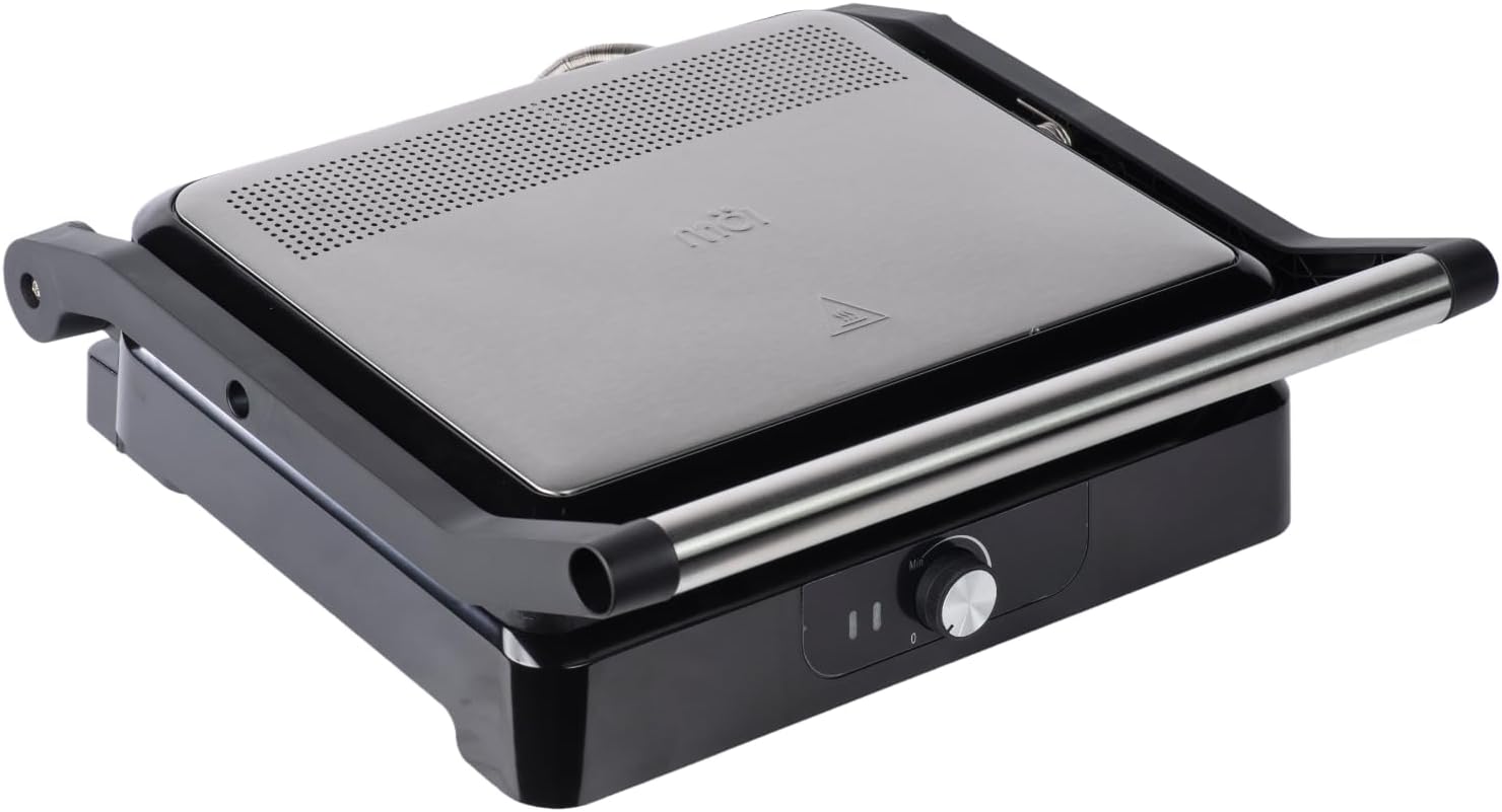 MOI Panini Press Grill & Sandwich Maker - 180° Dual-Plate Stainless Steel Grill Press for Paninis, Grilled Cheese, Burgers, Quesadillas, Breakfast, and More - 11 x 9 Inch Panini Maker with Drip Tray