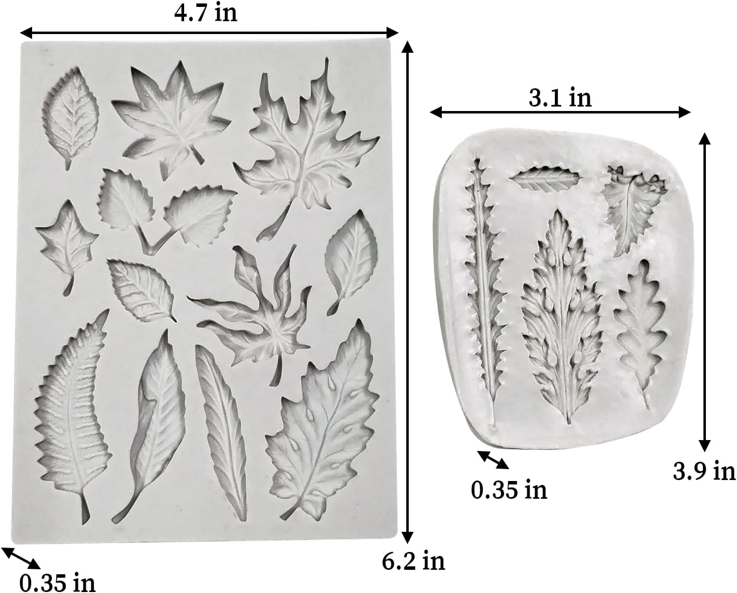 - LEAF SILICONE MOLD SET: The package includes 2x leaf silicone molds set. Vivid shape, various design, 17 cavity in total, could make assorted project in one time