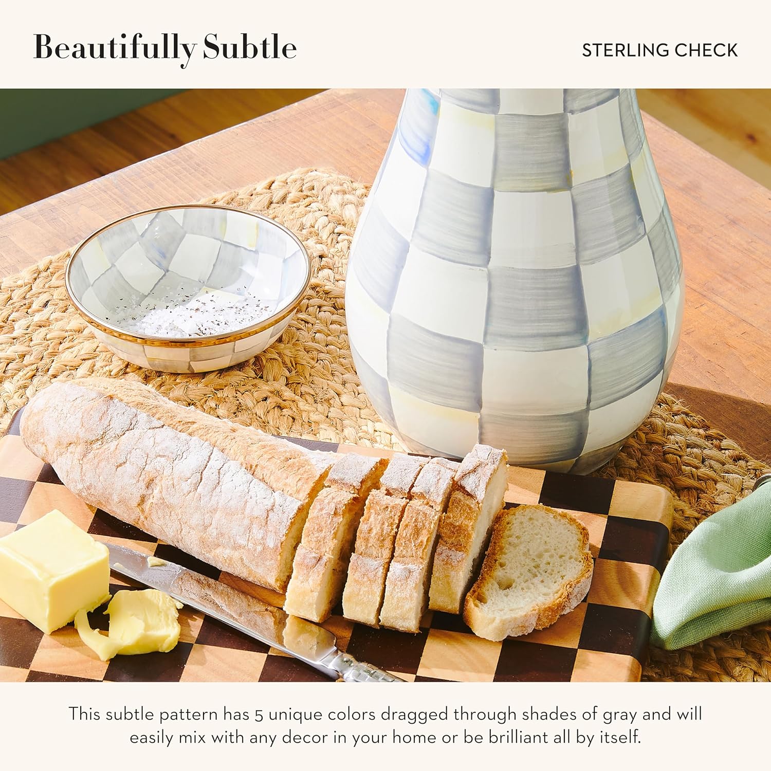 MACKENZIE-CHILDS Enamel Relish Dish, Small Serving Bowl for Entertaining, Gray-and-White Sterling Check