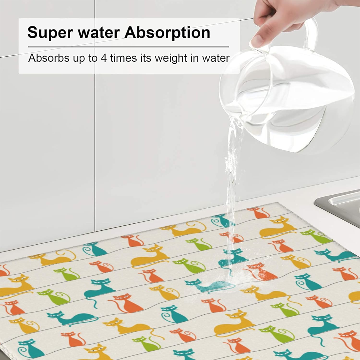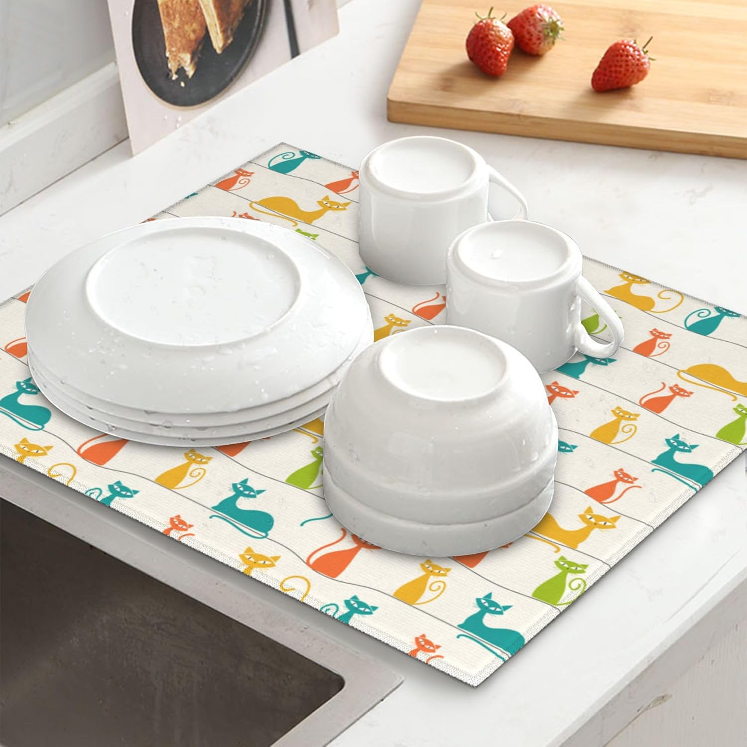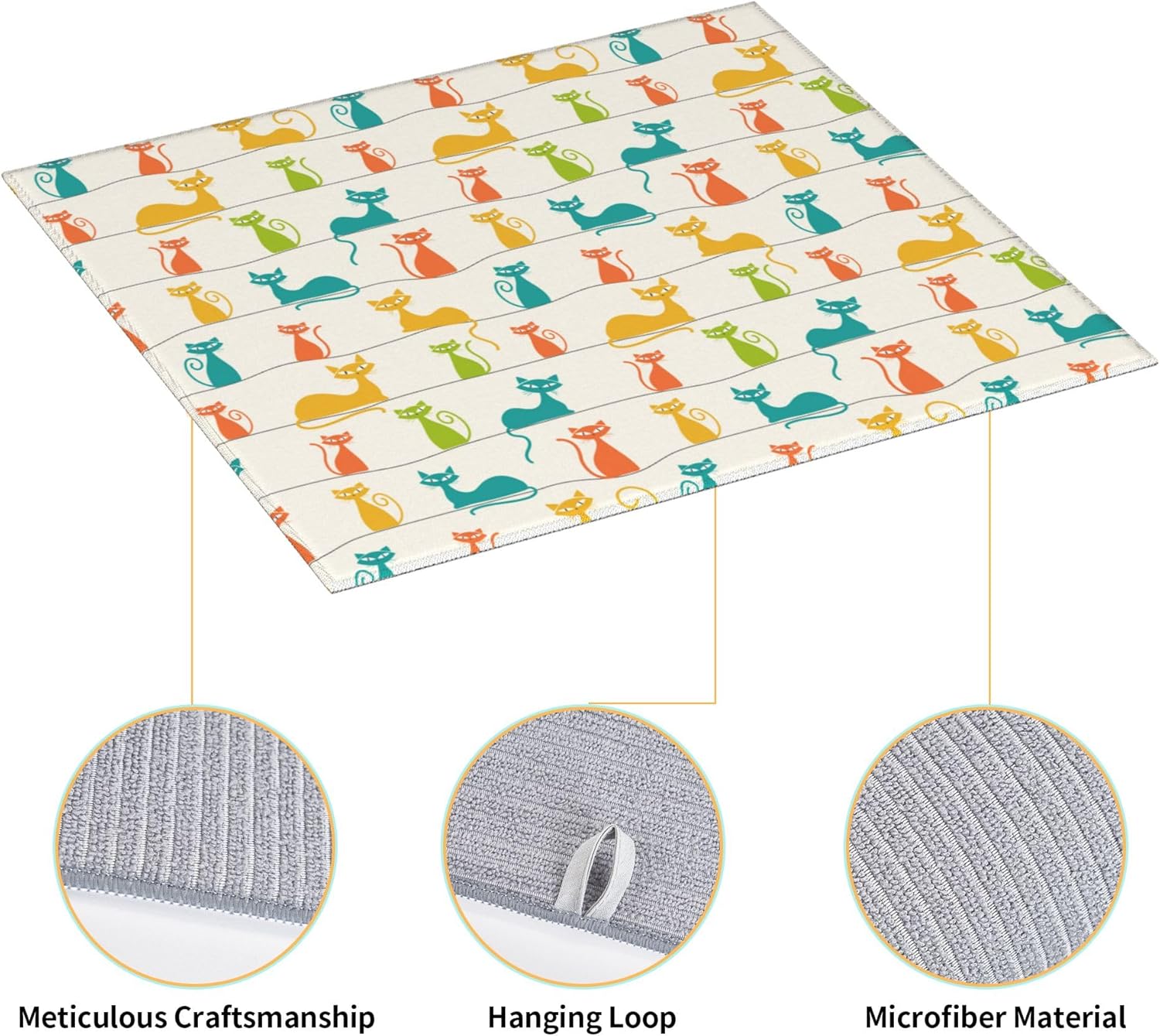 Mid Century Modern Cats Dish Drying Mat for Kitchen Counter Washable Absorbent Reversible Microfiber Cute Drying Pad Kitchen Accessories 16x18 Inch