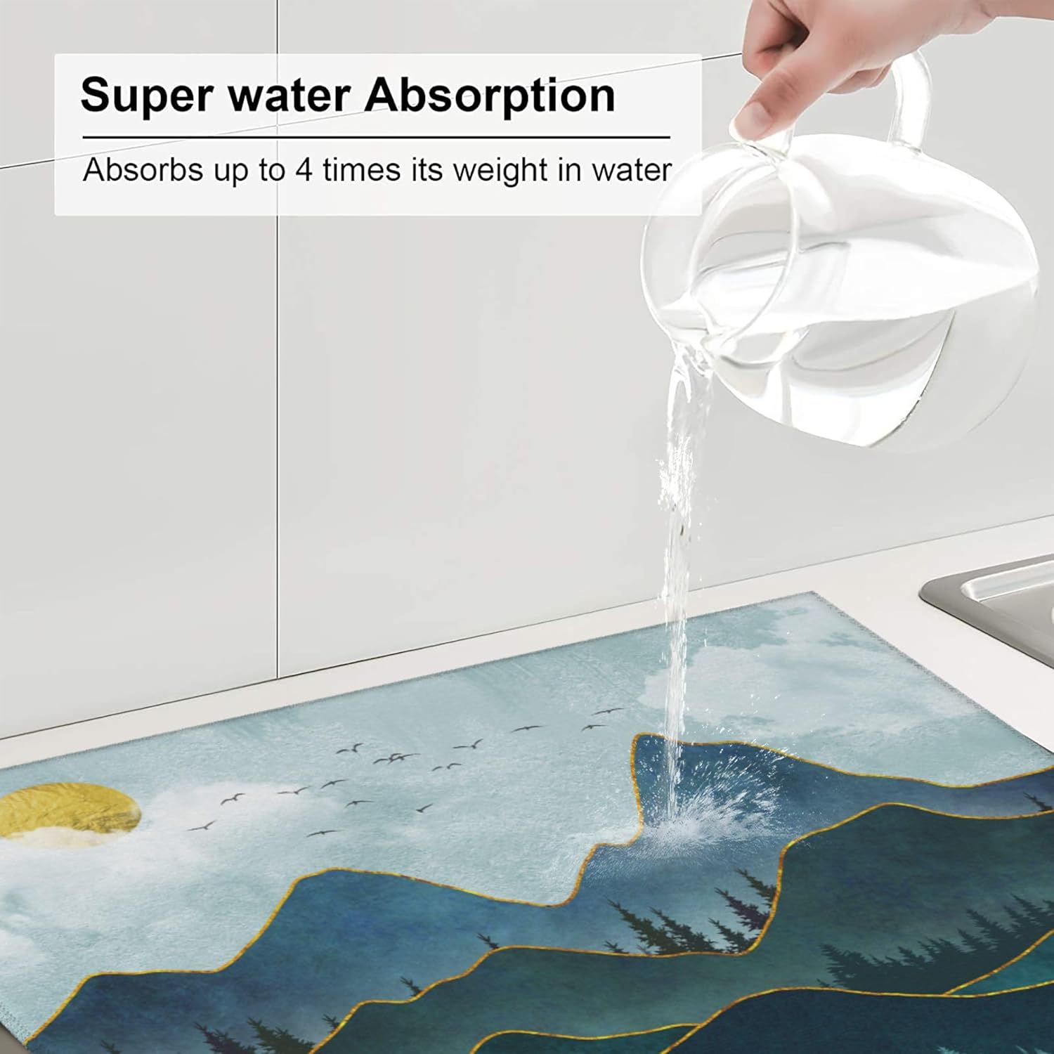 Mountain Peaks Nature Landscape Kitchen Drying Mat Modern Decorative Microfiber Dish Drainer Mat for Kitchen Counter Absorbent Reusable Washable 16x18 Inch