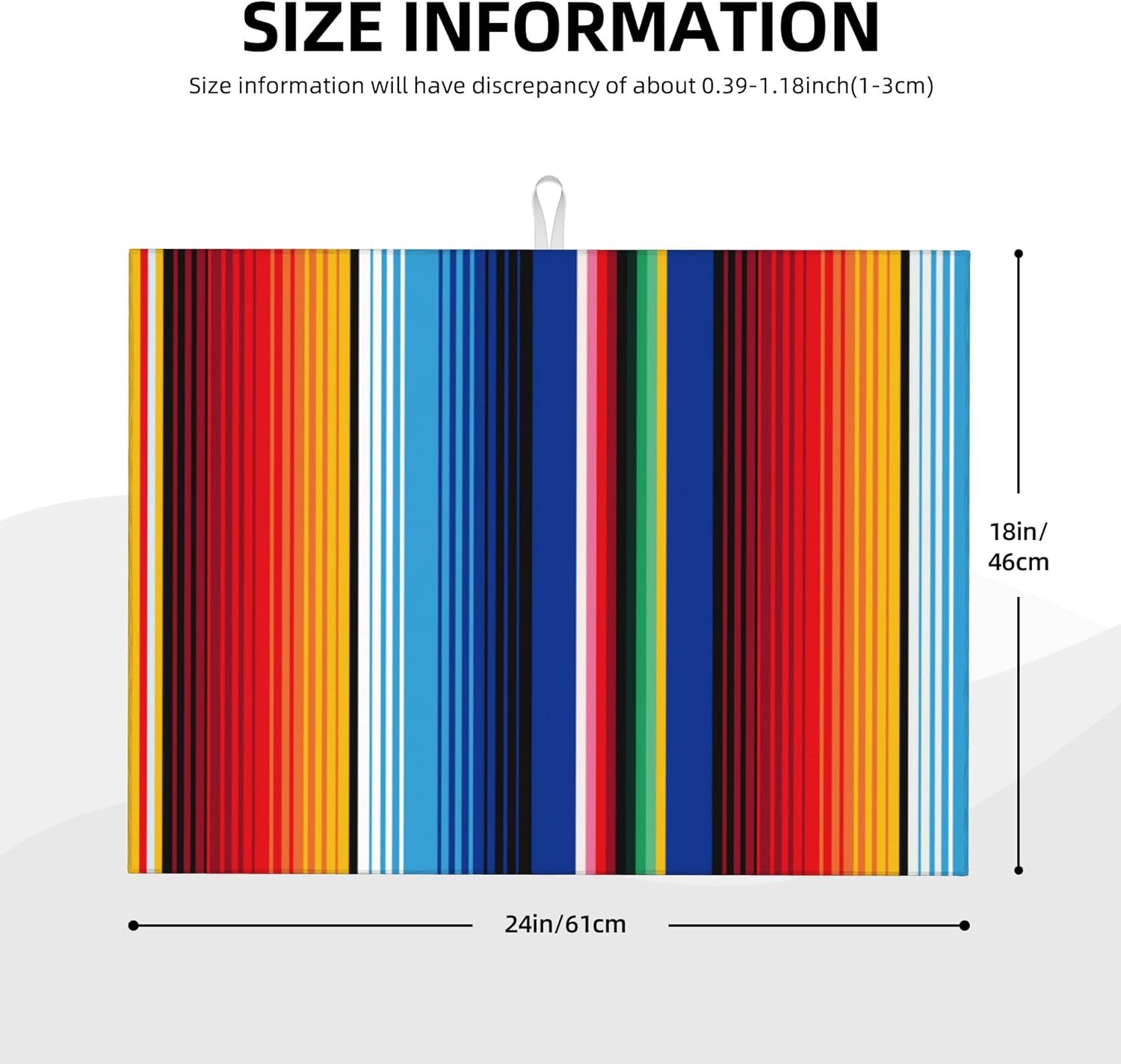 Mexican Dish Drying Mat for Kitchen Counter Rainbow Colorful Stripe Dish Drainer Rack Mats Washable Absorbent Reversible Microfiber Drying Pad Kitchen Accessories 18"x24"