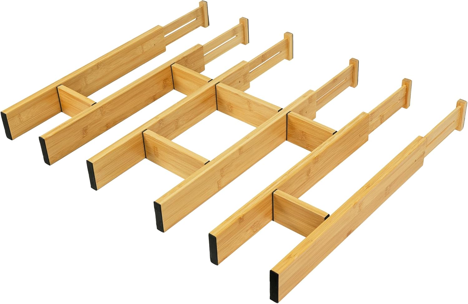 Adjustable Bamboo Drawer Dividers with Inserts, Expandable Spring-Loaded Drawer Organizer for Kitchen, Clothes, Tools, Silverware, Bamboo Organizer Separators - 6 Large Pieces