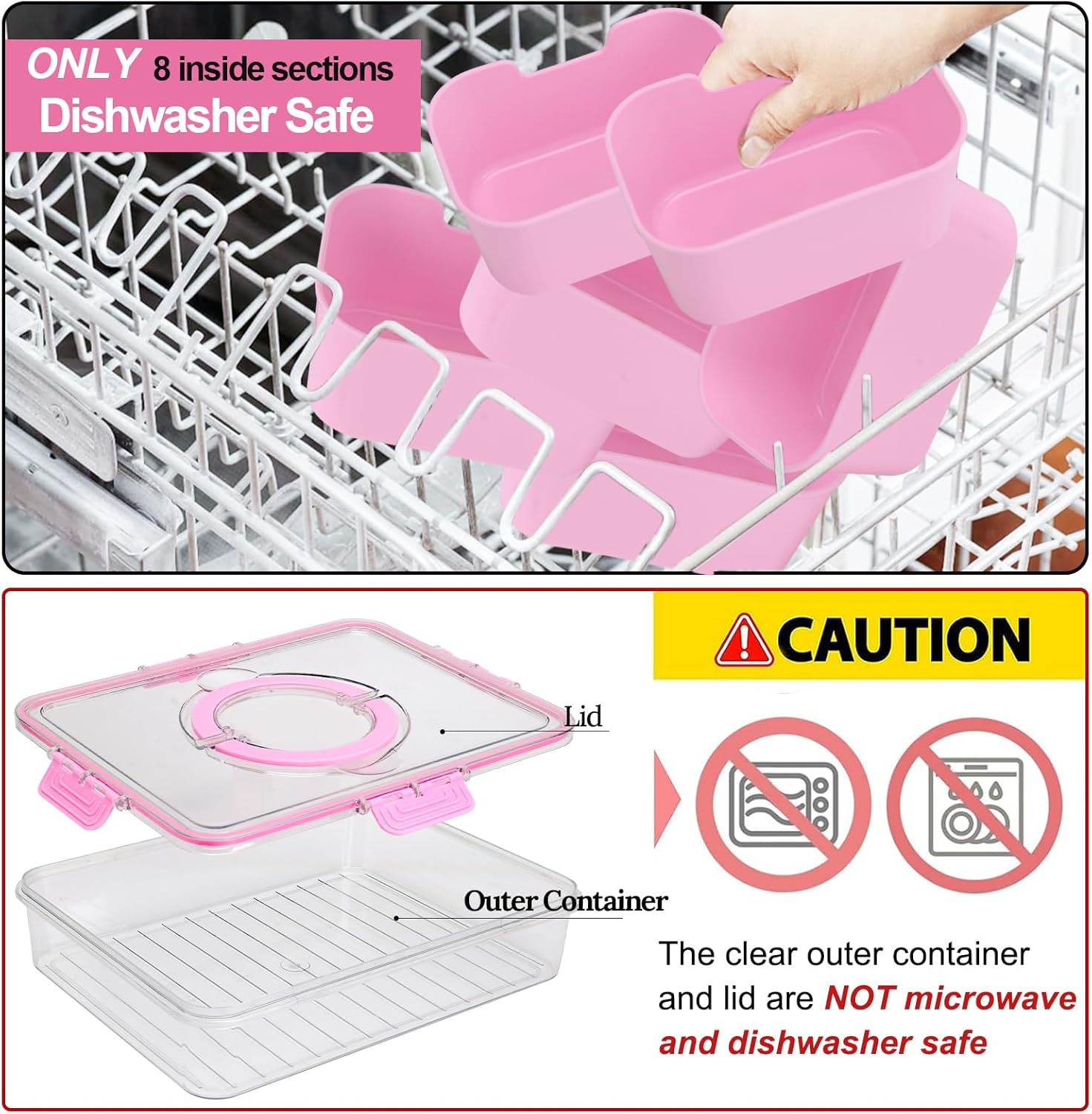 - ăRemovable Dividersă8 compartments of the snackle box container ensure that food does not touch each other, and the removable dividers design facilitates individual refills or cleaning of each compartment and keep your fridge or kitchen tidy